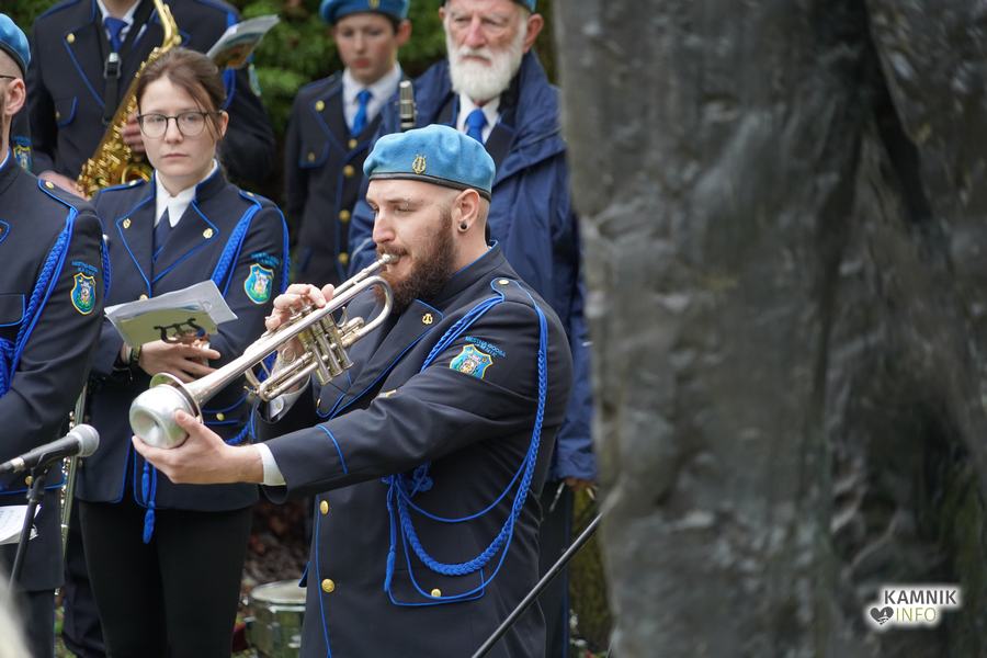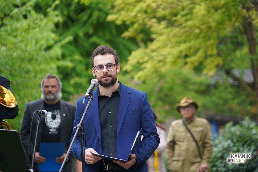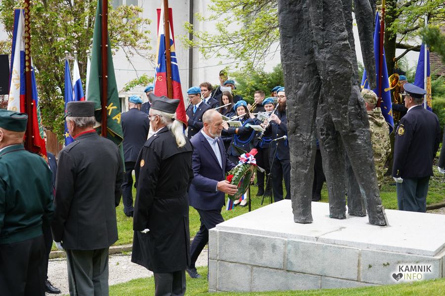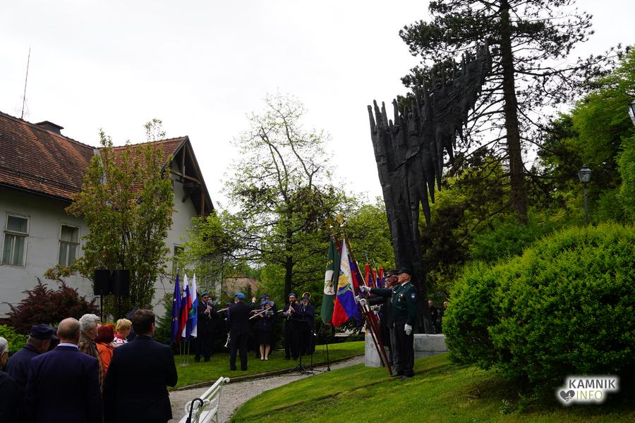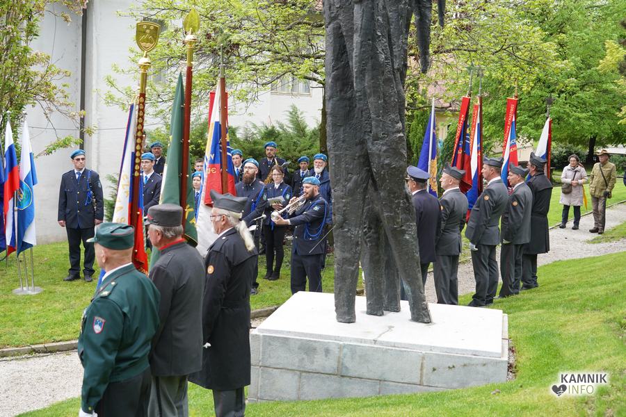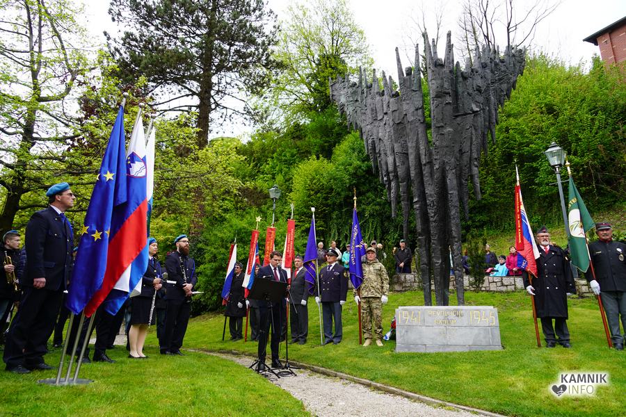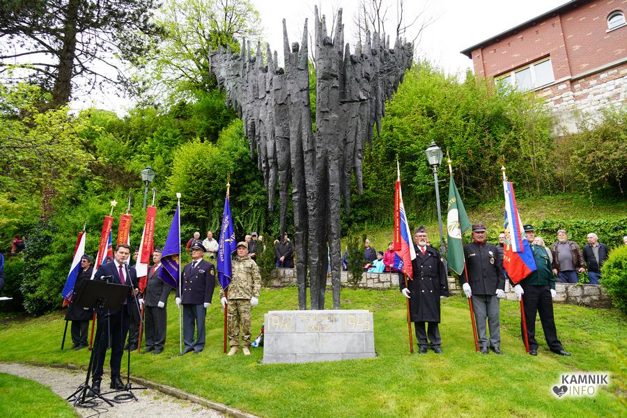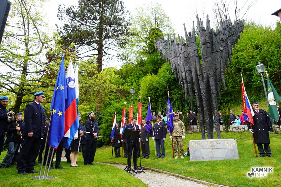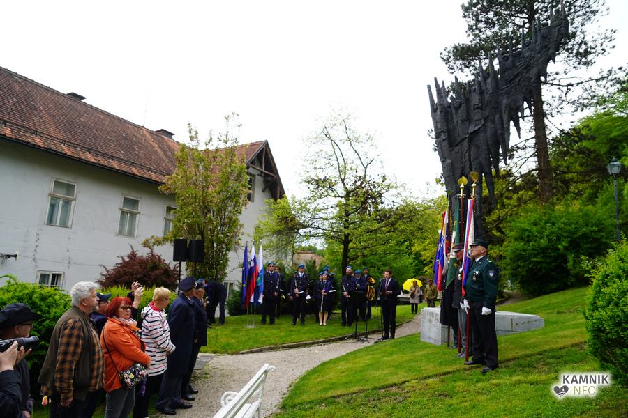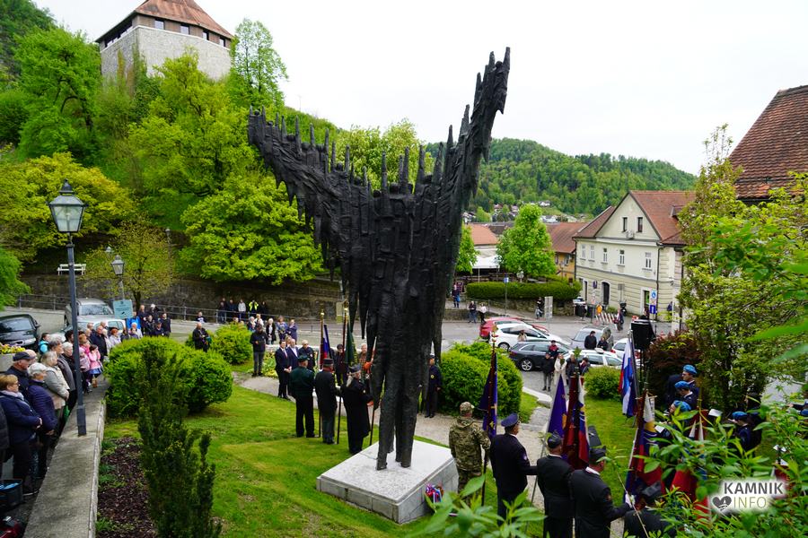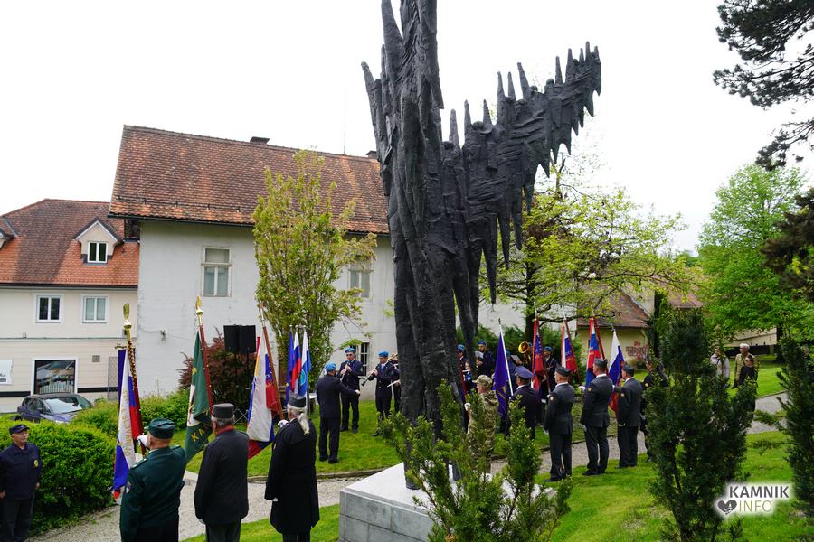 Zbrane med zelenjem in tulipani mestnega parka je s slovensko himno prikovala Mestna godba Kamnik, pozdravil pa kamniški župan Matej Slapar, ki je, med drugim dejal: „Današnji dan ni zgolj dan spomina na pogum in odločnost tistih, ki so se med drugo svetovno vojno uprli tujim silam, ki so nam želele vzeti preteklost in ukrasti prihodnost. Je tudi dan, ko smo se zbrali ob svečanem odprtju prenovljenega spomenika akademskega kiparja Draga Tršarja iz leta 1962. Zahvaljujoč strokovni prenovi kranjske enote Zavoda za varstvo kulturne dediščine, je ta umetnina spet zasijala v vsej svoji veličini in s svojo izrazno močjo dopolnjuje ambient parka Evropa v središču Kamnika. Gre za izjemno umetniško delo, kar je prepoznalo tudi Ministrstvo za kulturo, ki je s sofinanciranjem omogočilo, da je spomenik ohranjen v svoji avtentični obliki in bo še naprej bogatil naš kulturni prostor.“