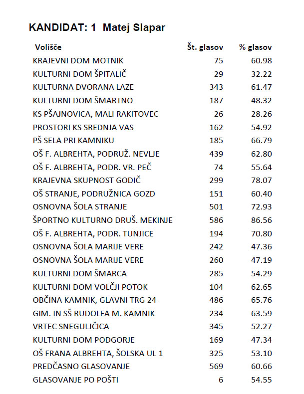 - Matej Slapar 6276 60,58 %