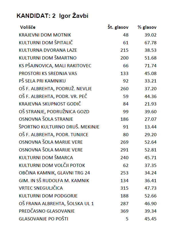 Skupni rezultat glasovanja za župana v občini (po izžr. št.)