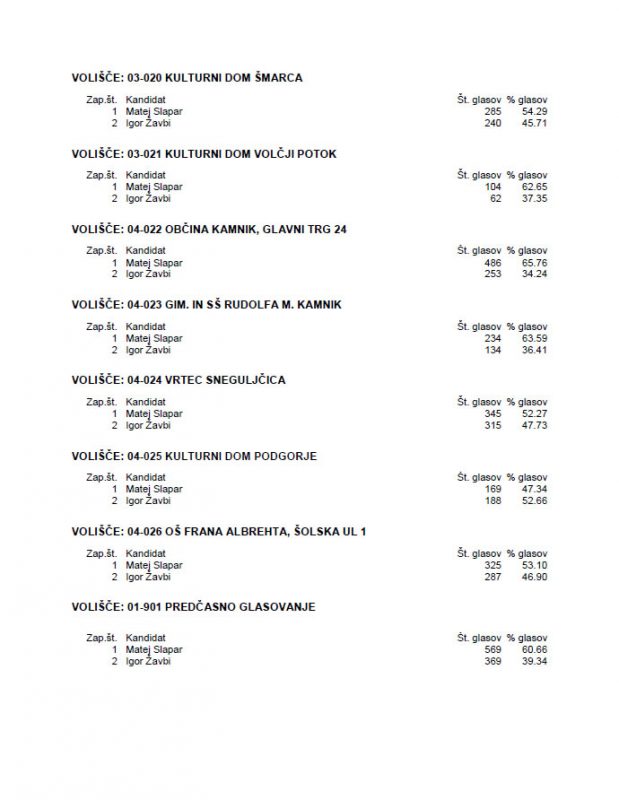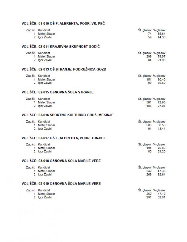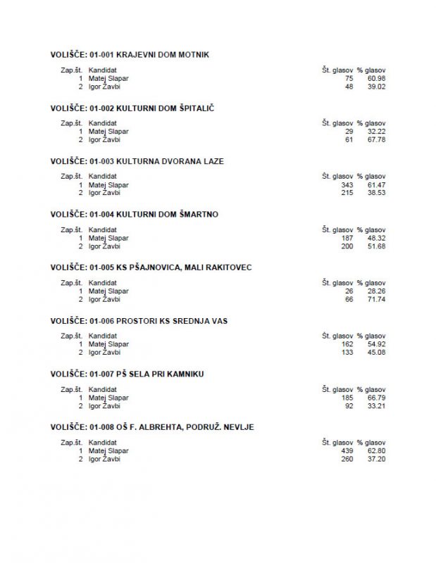 | Število neveljavnih glasov (za župane): | 173 | 36 |