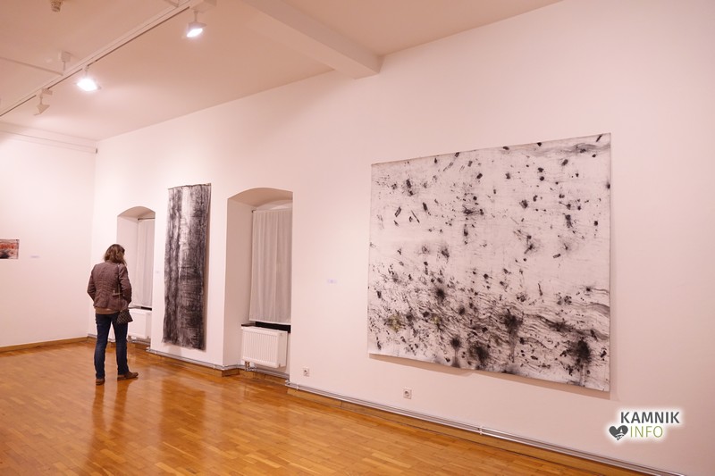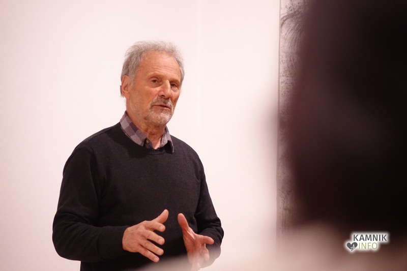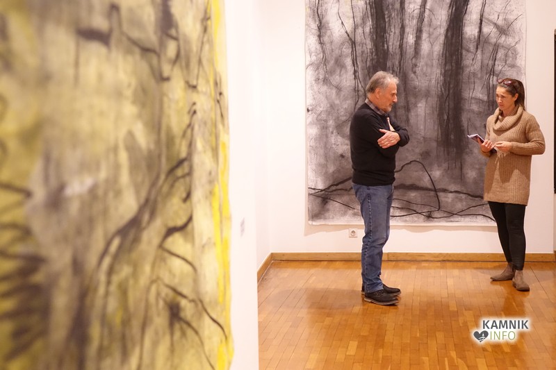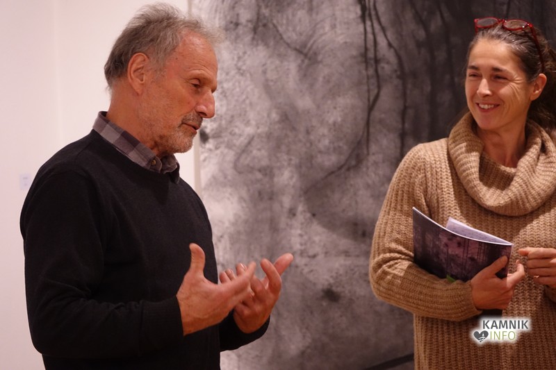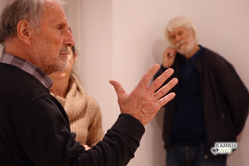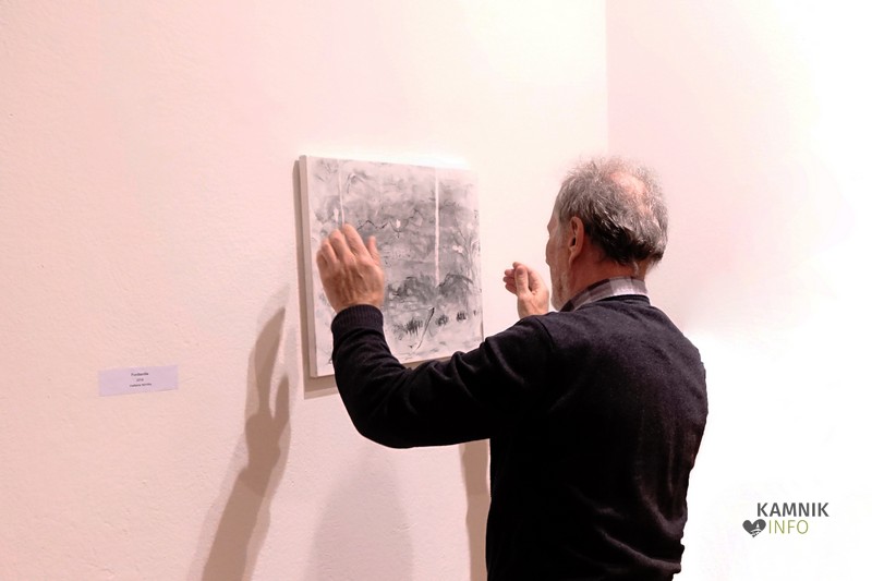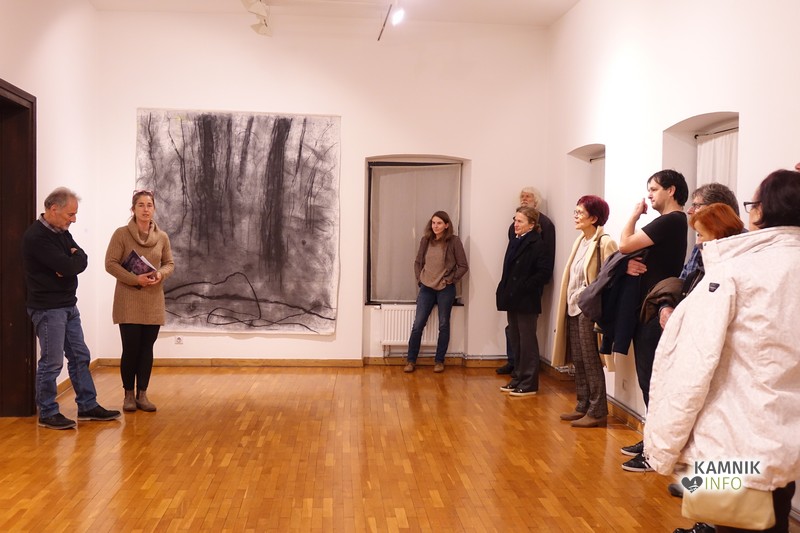 Ob glasbeni spremljavi so se kasneje zbrani namenili skozi zanimivo galerijo in si ogledali stvaritve avtorja, vmes pa jim je seveda odgovarjal tudi na vprašanja o tehnikah, nastanku in še čem.