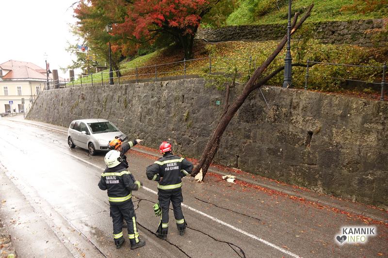 Okoli 10:30 je se je z drevesa na pobočju Malega gradu odlomila večja veja, ki je padla na ulico oz. v Samčev predor v središču kamnika, pri tem pa k sreči zdruznila zgolj svetilko javne razsvetljave in ograjo.