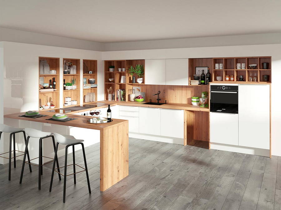 Z več kot 55-letno tradicijo in z zaupanjem več milijonov kupcev po vsej Evropi postavljamo standarde v svetu kuhinj. Brezplačno ponujamo številne koristne ugodnosti, kot so: do 15 % več prostora v spodnjih elementih, trpežnejše ohišje/korpus z debelino iverne plošče 18 mm, 70 cm globoka delovna plošča – brez doplačila, kakovostna iverna plošča, 8 mm debele steklene stranice pri izvlečnih predalih, Blumotion tehnologija, ki je najvišje kakovosti in še veliko več.