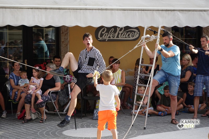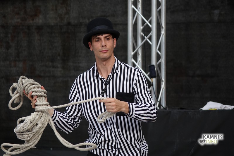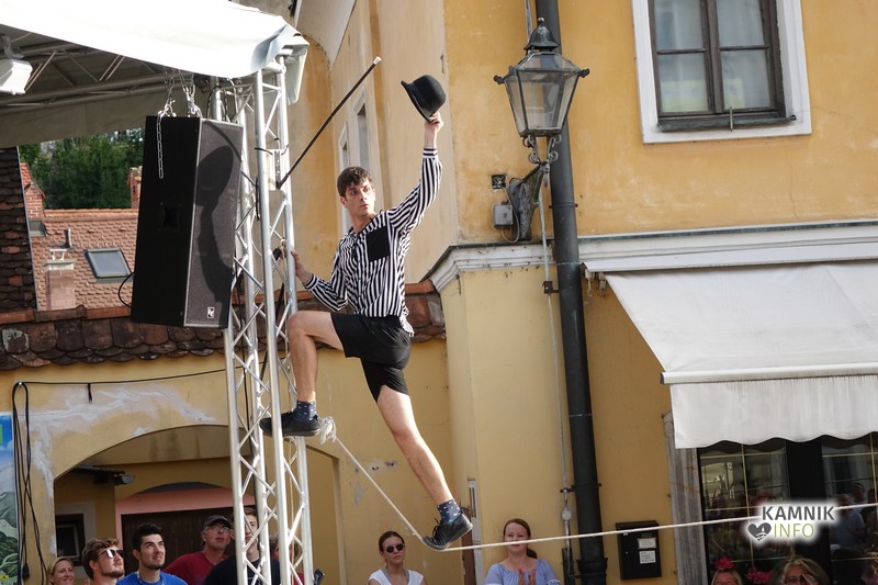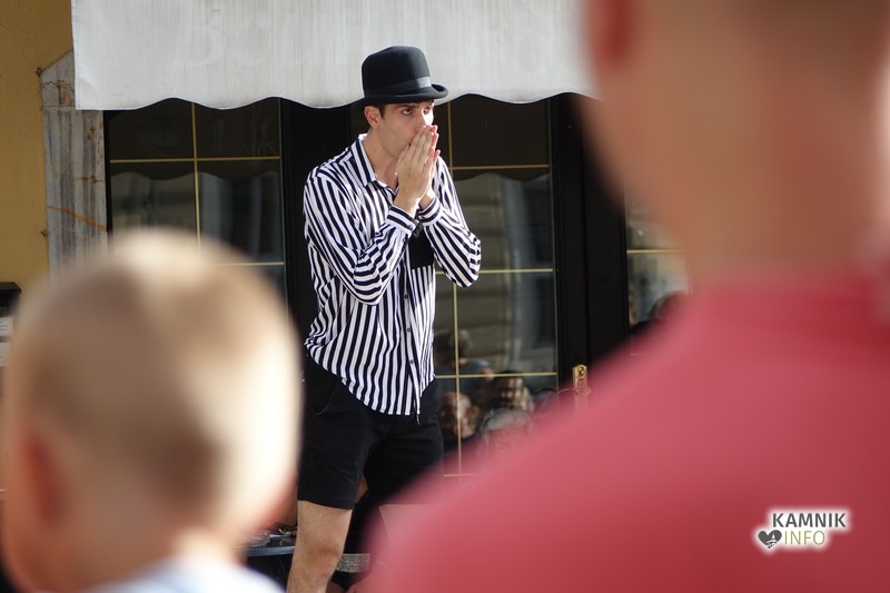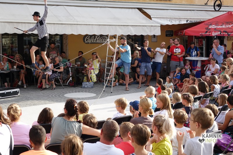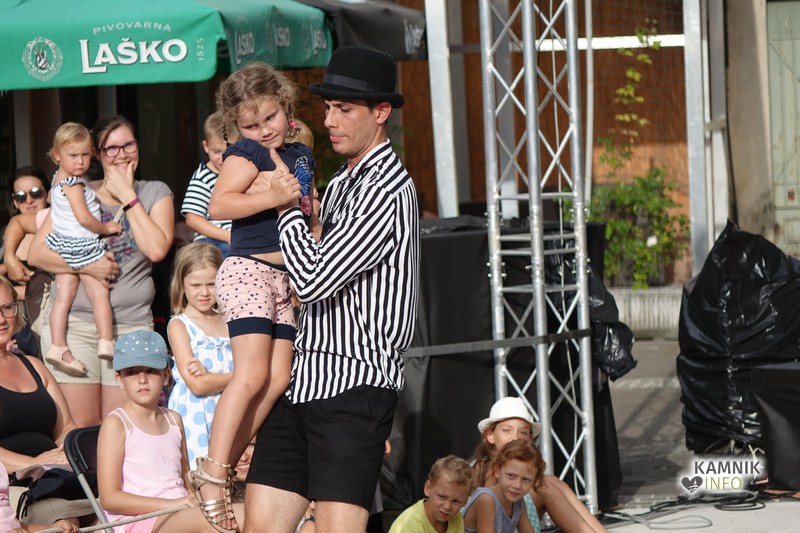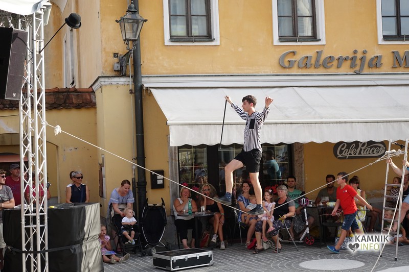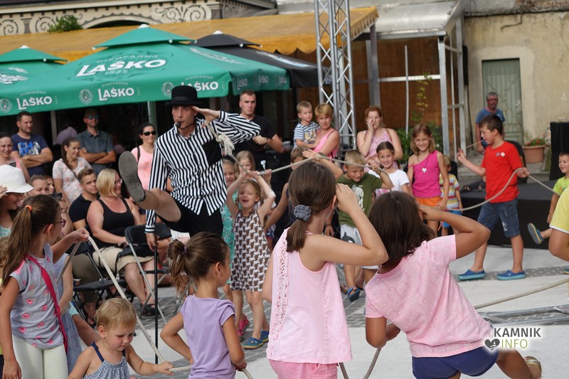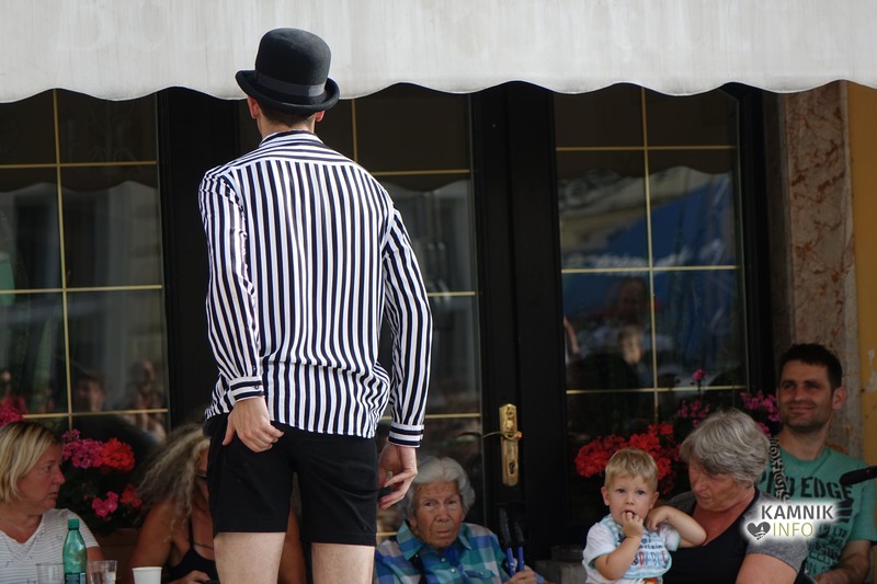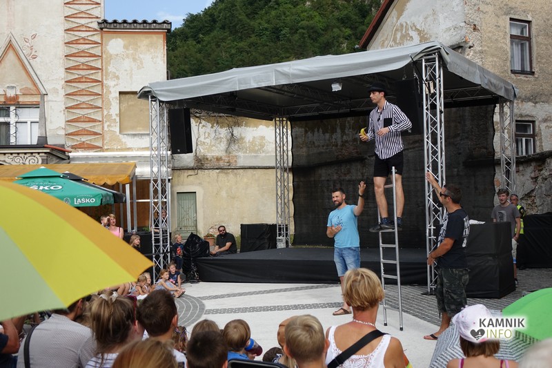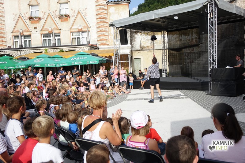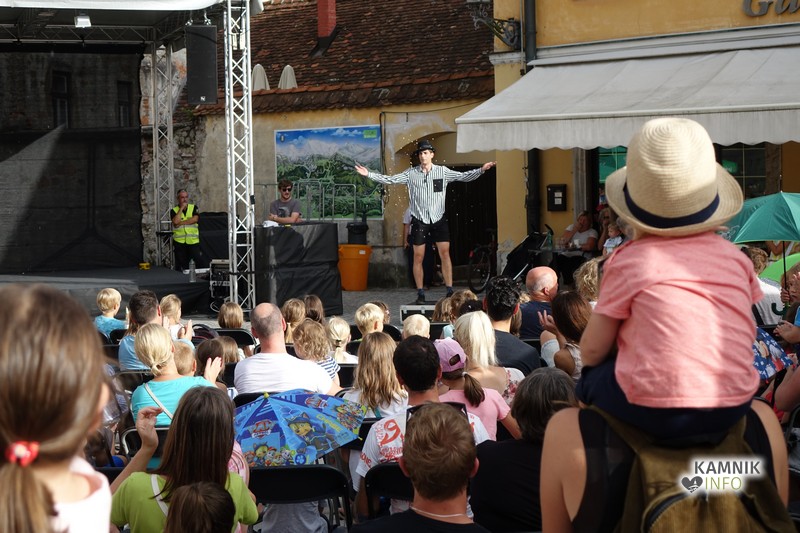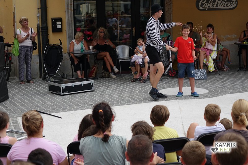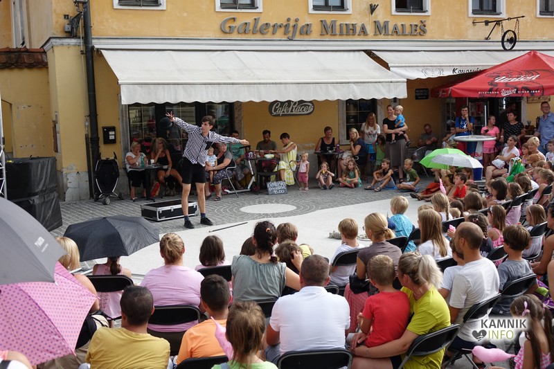 Medtem, ko je v mekinjskem samostanu potekala delavnica pripovedovanja z Bredo Podbrežnik Vukmir, je nekaj redkih dežnih kapelj strašilo starše in otroke, ki so na Glavni trg prišli pod cirkuški klobuk z Andrejem Tomšetom.