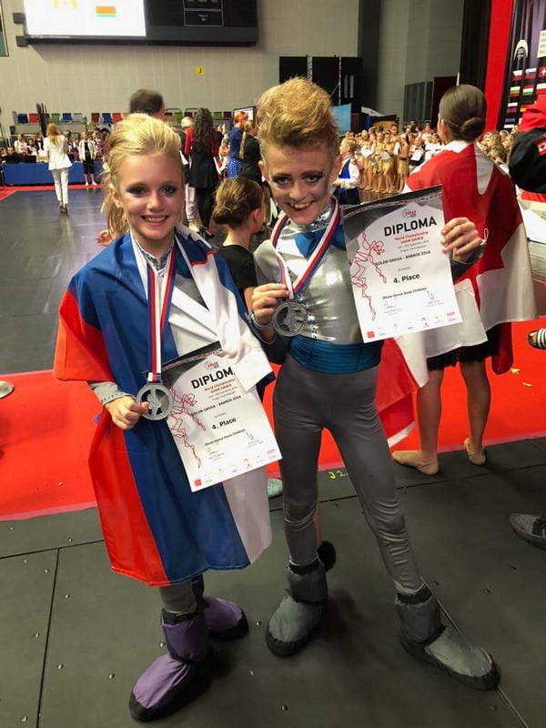 Na državnem prvenstvu sta zmagala s koreografijo Nagajiva roža-Silly flower. Za svetovno prvenstvo, na katerega smo se pripravljali mesec in pol, smo se odpravili z drugo koreografijo, s katero smo želeli biti konkurenčnejši…. in uspelo nam je. S koreografijo Podgance-It’s great to be a rat, sta si Živa in Grega priplesala odlično 4. mesto od skupaj 26. nastopajočih parov.