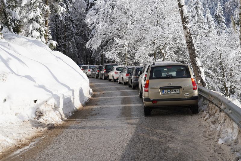 Lepo vreme in planinska zimska idila ter raznovrstnih (ne)učinkovitih ukrepov naveličane trume obiskovalcev, ki jih je lep dan spravil na plano, so v krajih pod Veliko planino znova povzročili pravi prometni kaos.