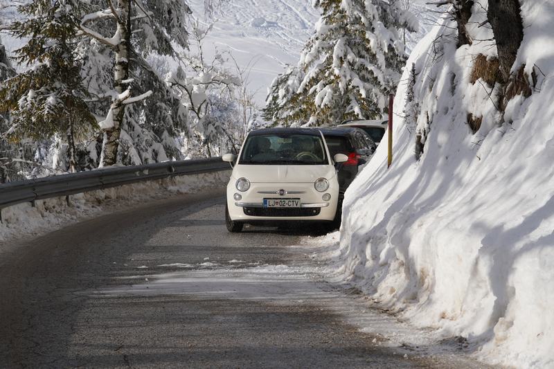 Precejšnjo gnečo ob cesti je bilo opaziti že na Krivčevem, kjer je, spričo prezasedenosti Velike planine in Črnivca, spontano vzniknilo priložnostno sankališče.