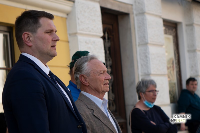 Zato so fantje danes podoknico pričeli prav s pesmijo, ki so jo peli tudi osemnajst let nazaj – Koroško narodno Kje so tiste stezice. Zapeli so tudi pesmi Imel sem ljubi dve in Završki fantje, vmes je zbrane pozdravil tudi kamniški župan Matej Slapar, ki je poslušalce povabil na jutrišnjo proslavo, za konec pa smo prisluhnili še nekoliko okrnjeni sestavi salonskega orkestra DKD Solidarnost, ki so se mu prav veselo in ubrano pridružili obiskovalci pri znani pesmi Slovenija, od kod lepote tvoje.
