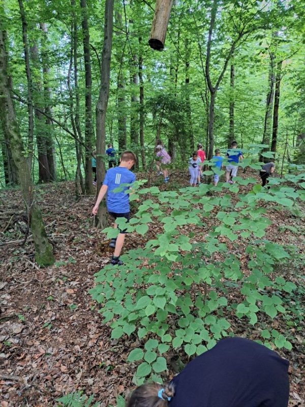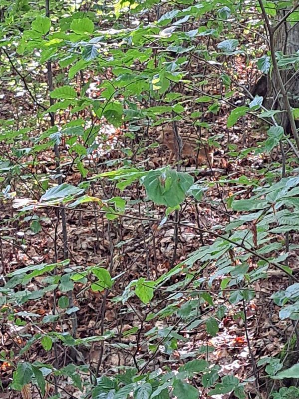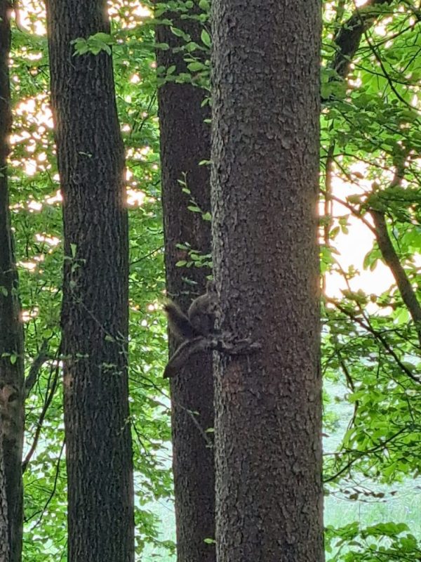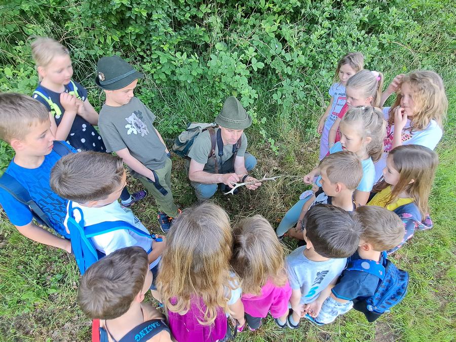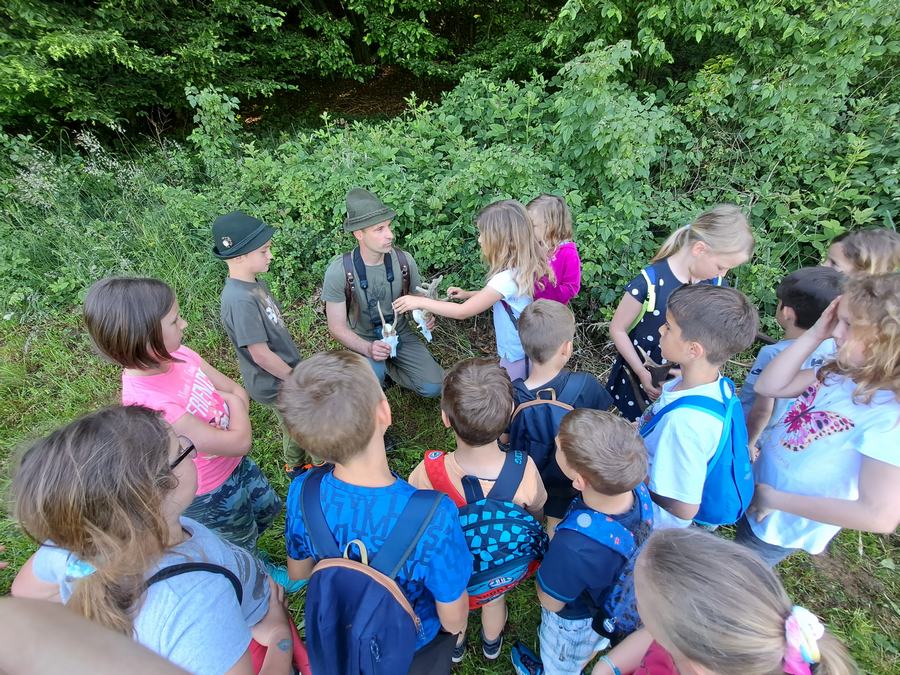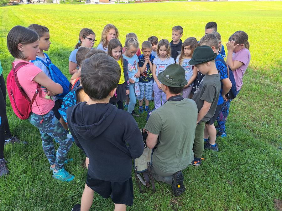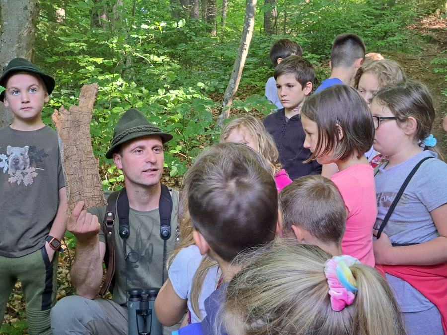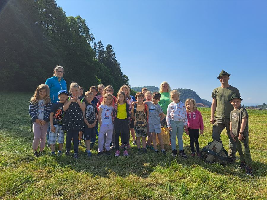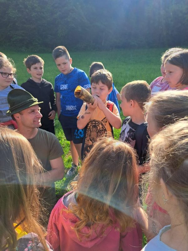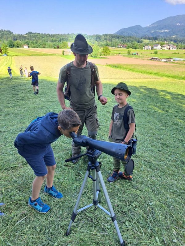 Škratji spanec je bil to noč res kratek, saj smo jo zgodaj zjutraj mahnili na spoznavanje živali in lov s poklicnim lovcem Alešem Zamljen iz lovske družine Stahovica.