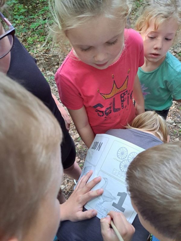 Vsaka naloga v gozdu je izdala črko gesla za odkritje zaklada. Po uspešno opravljenih nalogah in dobljenem zakladu, so si otroci privoščili malico, se odžejali in se podali po pravljičnih pripovedkah mesta Kamnik s pravljičarko Heleno Sterle.