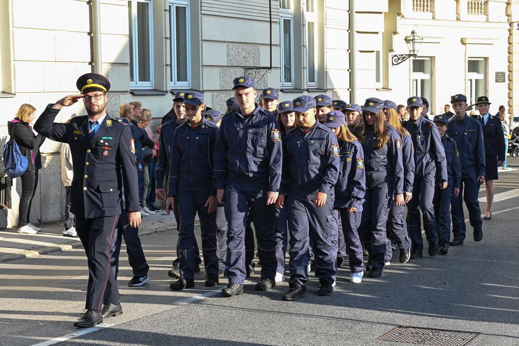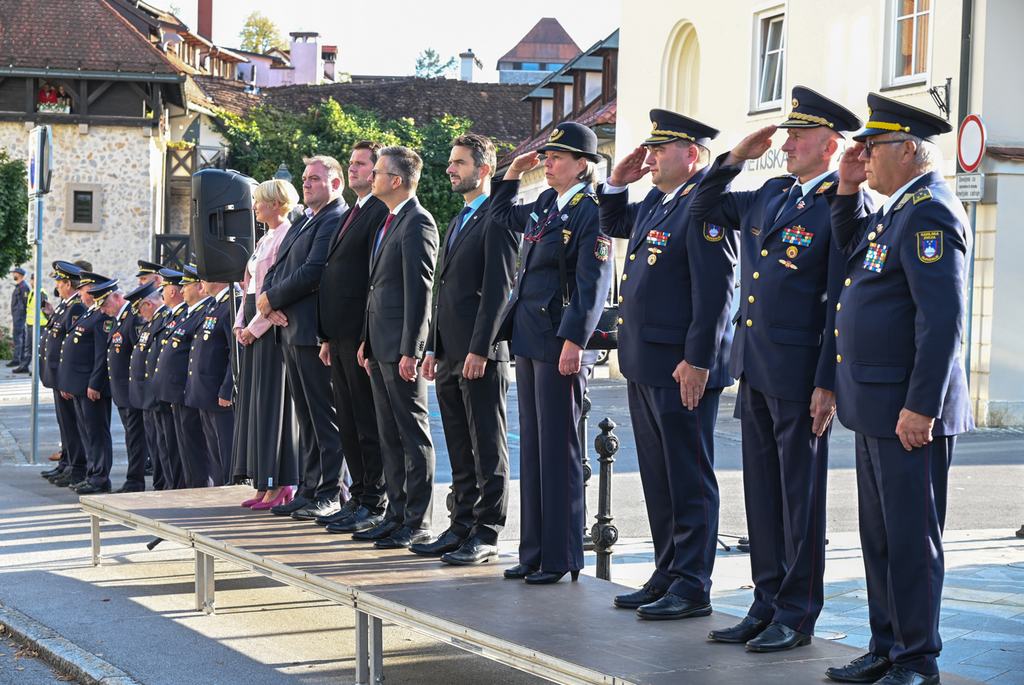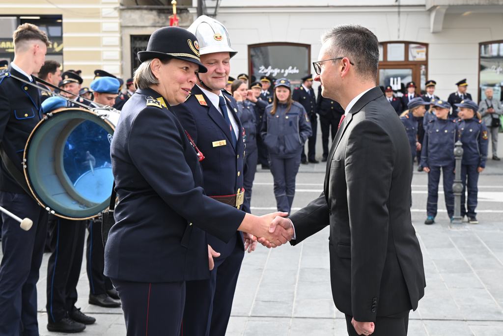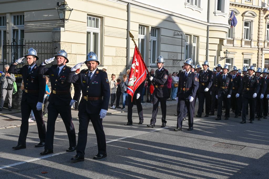 Parado praznično odetih gasilk in gasilcev je na poti od Glavnega trga do kamniškega hrama kulture prišlo pozdraviti tudi precejšnje število občank in občanov, med njimi so bili tudi številni ugledni gostje, ki so gasilke in gasilce pozdravili s častne tribune.