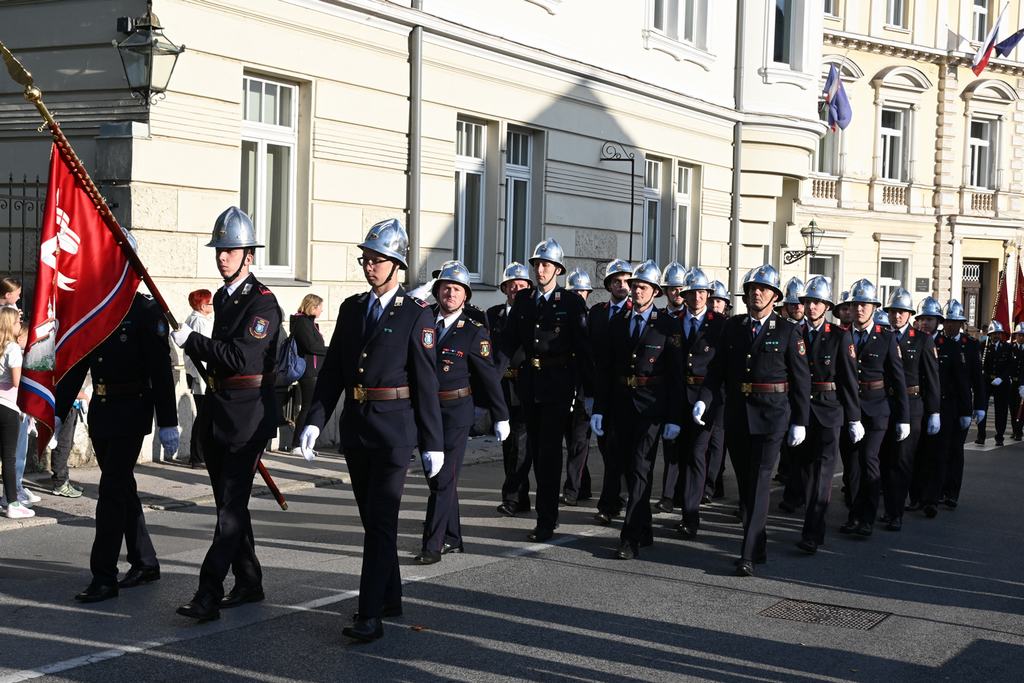 Gasilke in gasilci, predstavniki vseh društev, ki delujejo na območju naše občine, so se včeraj popoldne, 27. 9. 2025, zbrali na kamniškem Glavnem trgu ter, ob zvokih koračnic Mestne godbe Kamnik, v slovesni paradi krenili proti Domu kulture Kamnik, kjer so s slavnostno akademijo počastili sedem desetletij delovanja Gasilske zveze Kamnik.