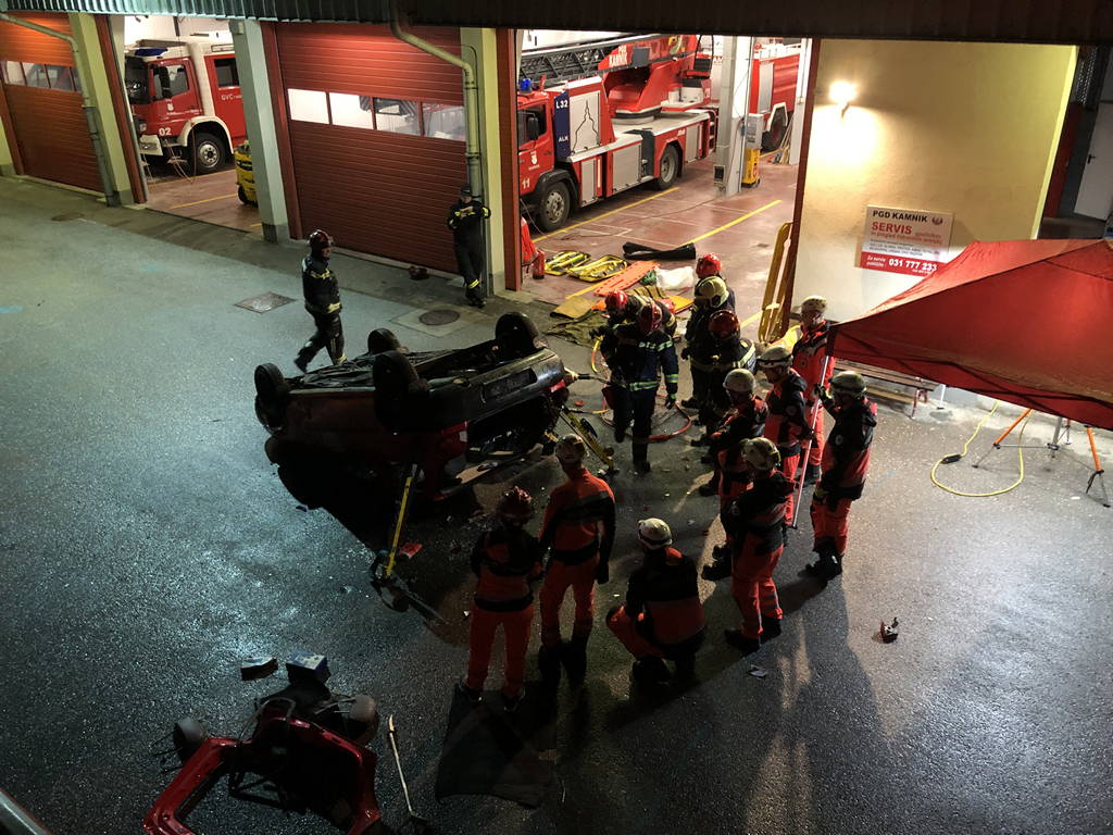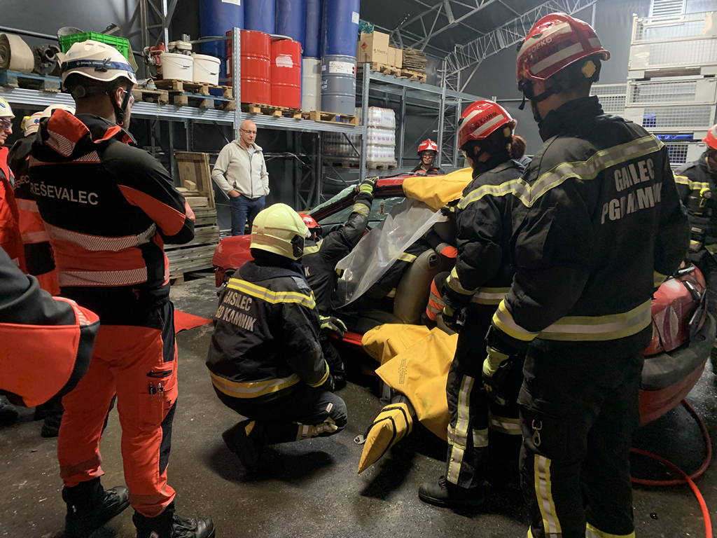 Teden dni kasneje se je skupno strokovno izobraževanje preselilo na bodoči izobraževalni poligon pri gasilskem domu PGD Kamnik, kjer smo kamniški gasilci pripravili izobraževanje na temo tehničnega reševanja v primeru prometnih nesreč. Kljub temu, da nam vreme ni bilo naklonjeno, nas le-to ni zaustavilo pri izvedbi začrtanih vaj; podobno kot nas ne pri resničnih intervencijah.