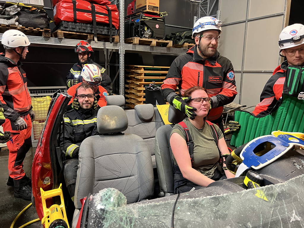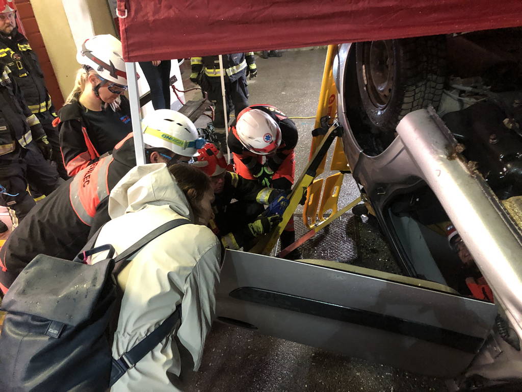 Izobraževanje je bilo razdeljeno na dve delovni točki. Na prvi delovni točki se je obravnavalo reševanje poškodovanih oseb, vključno z ukleščenimi, v primeru poškodovanega vozila, ki je obstalo po trku na kolesih. Na drugi točki pa se je izvajalo reševanje ponesrečencev iz vozila na boku ter prevrnjenega na streho. Obema točkama je bilo skupno, da je pred praktičnim delom potekala teoretična predstavitev gasilskega orodja in postopkov v posamičnem primeru. Na delovnih točkah sta se usposabljali dve predhodno določeni združeni in uravnoteženi skupini, sestavljeni iz gasilcev, reševalcev, diplomiranih zdravstvenikov ter zdravnikov. S tem smo sestavo obeh skupin najbolje približali realnim situacijam.