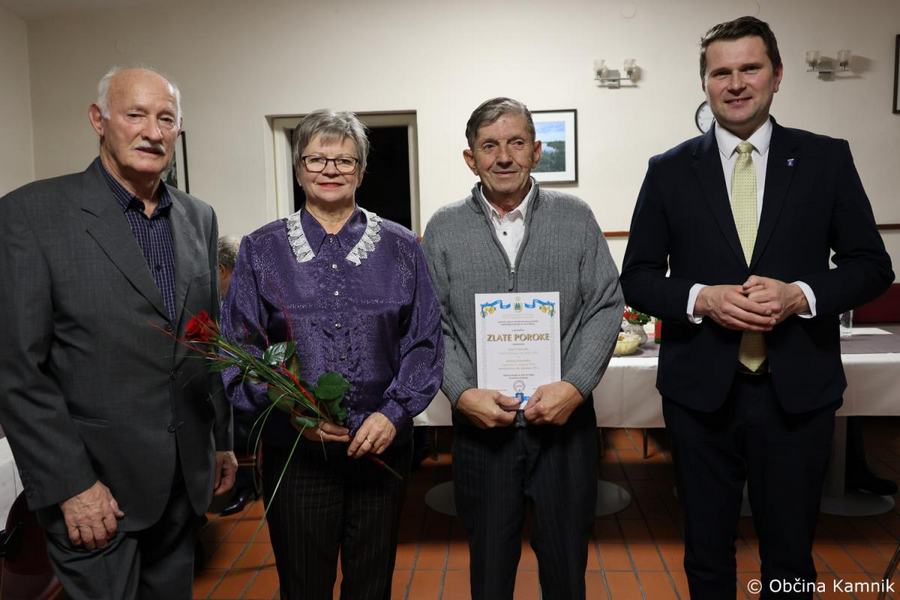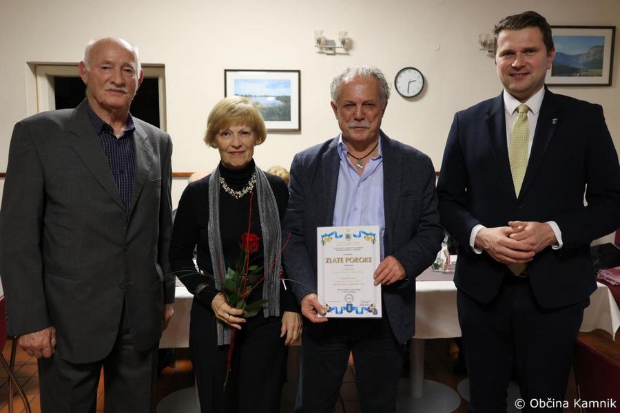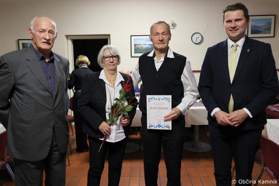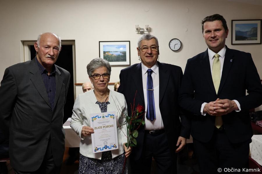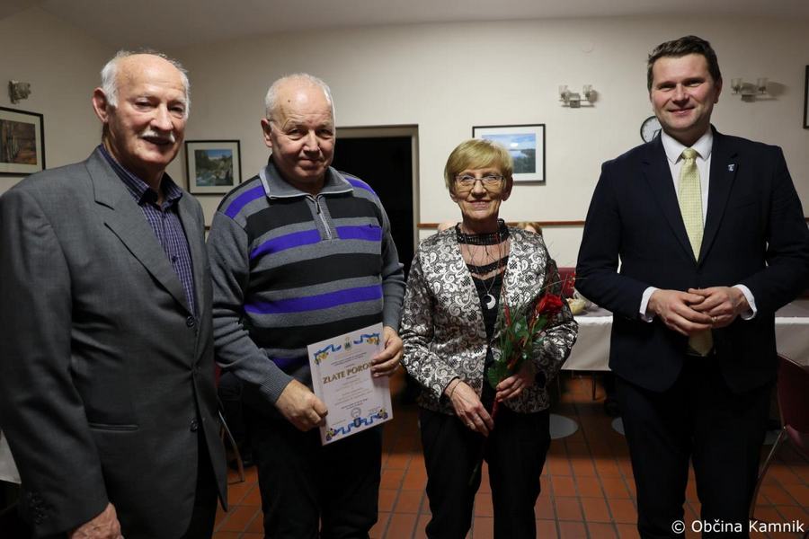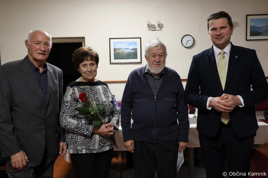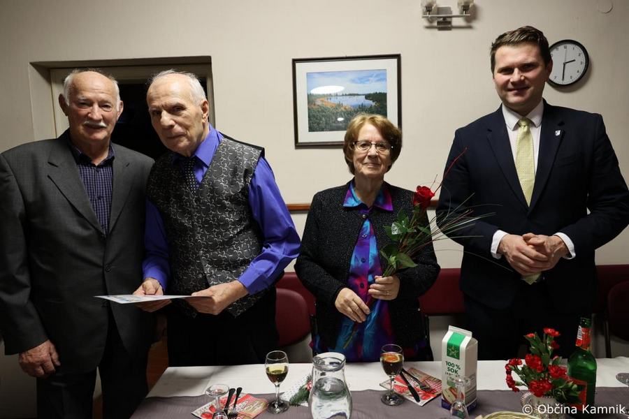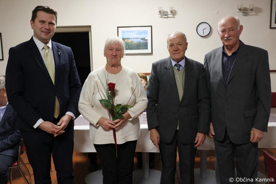 Župan Matej Slapar se je včeraj popoldan udeležil slavnostne podelitve priznanj diamantnim in zlatim parom Društva upokojencev Kamnik. Skupaj s predsednikom Društva upokojencev Kamnik Vinkom Polakom je v gostišču Marjanca podelil priznanja in cvetje jubilantom. Ker v lanskem decembru razmere niso dopuščale podelitve, so se na Društvu upokojencev Kamnik odločili, da združijo vse jubilante in jih skupaj povabijo na praznovanje.