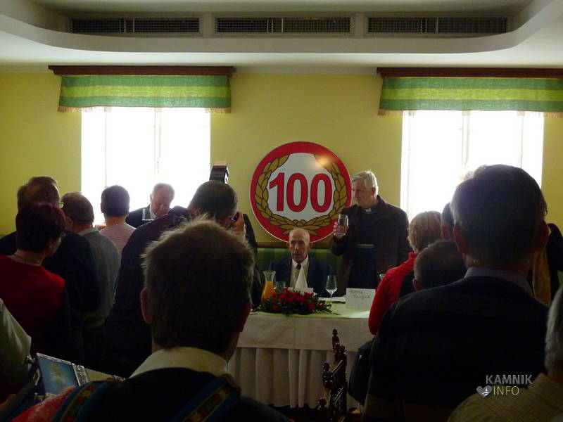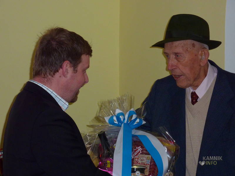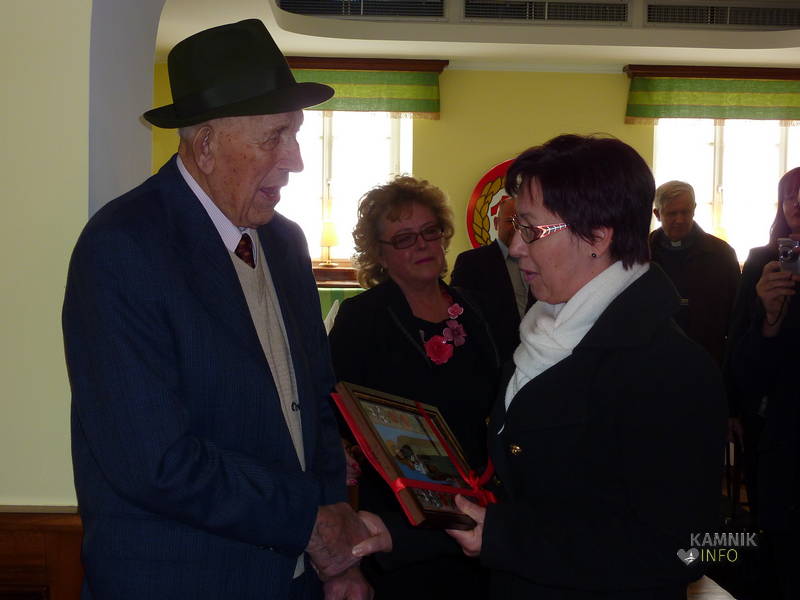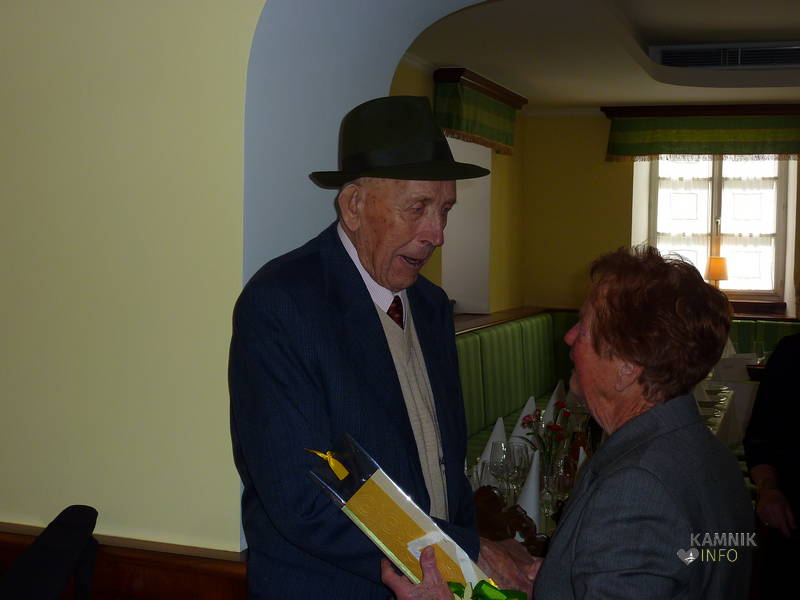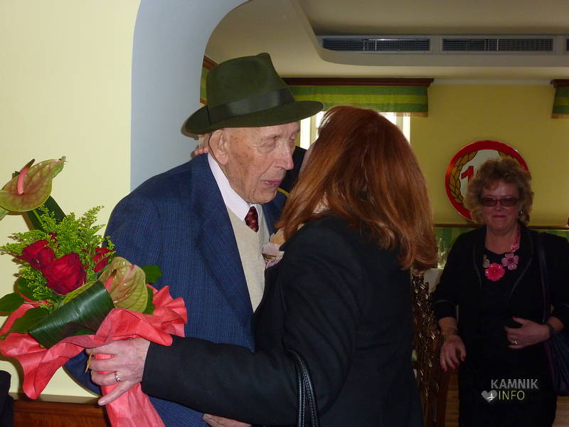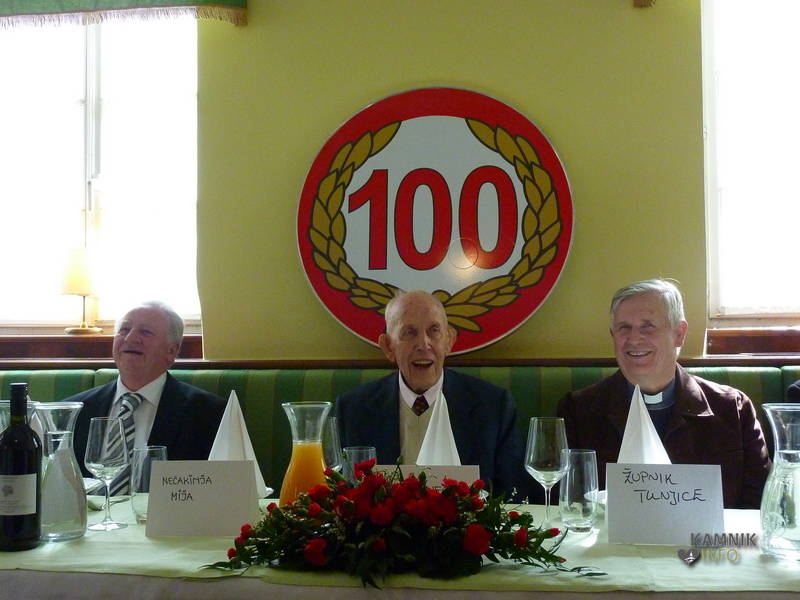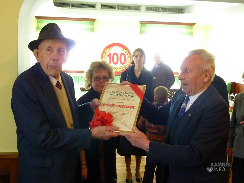 V imenu Občine Kamnik je slavljencu čestital podžupan Igor Žavbi, predstavnik Zveze borcev NOB Matevž Košir mu je izročil zahvalo, čestitala sta mu predsednik društva upokojencev Vinko Polak in predsednik KS Tunjice Matjaž Sedušak, od svojih sosedov je dobil podobo njegovega zavetnika sv. Jožefa, zvrstila se je kopica drugih čestitk in daril, njegovi sorodniki, pa so mu podarili uro s staro rezbarijo, na kateri ga je, s sekiro v roki, kot spomin na čase ko je še izdeloval prekrasne in najrazličnejše lesene izdelke, upodobil kamniški slikar Marjan Novak Škatla.