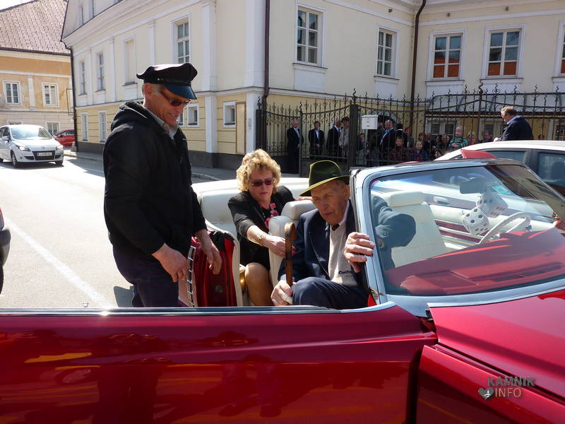 Jožeta Pregleda, stoletnika iz Laniš pri Kamniku so do hotela pripeljali v prečudoviti starodobni limuzini, kjer ga je navdušeno pozdravila množica zbranih sorodnikov, bližnjih sosedov, predstavniki občine, različnih društev in organizacij ter vrsta predstavnikov lokalnih medijev.