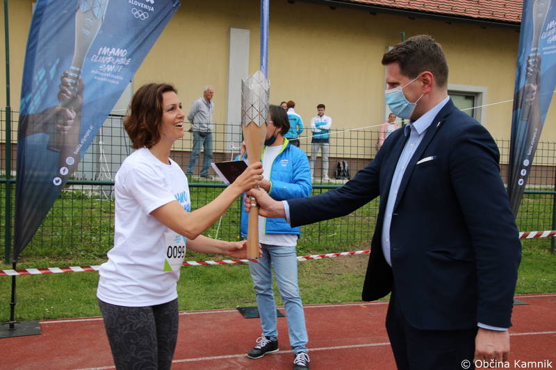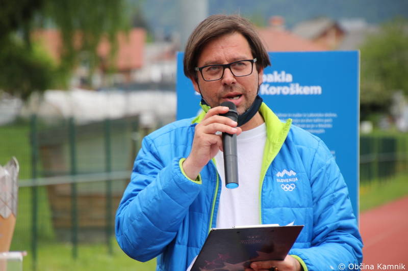 Matej Slapar, župan Občine Kamnik je sodelujočim otrokom, športnikom, organizatorjem ter predstavnikom medijev namenil vzpodbudne besede: »Občina Kamnik je mesto športnikov in športa, imamo kar nekaj športnih objektov, ki se jih trudimo vzdrževati in razvijati, da imajo tako športniki za treninge ter udejstvovanje v vrhunskem športu, kot občanke in občani možnost rekreiranja. Ponosni smo, da iz Kamnika izhaja in tudi živi lepo število olimpijcev, nekateri med njimi so danes tudi z nami in bodo ponesli Slovensko baklo v svojem častnem krogu po kamniškem Stadionu prijateljstva. Sporočilo olimpijske bakle in olimpijskih iger je sporočilo povezovanja, prijateljstva, sporočilo miru, zdravega načina življenja. Na tem mestu bi se iskreno zahvalil tudi Olimpijskemu komiteju, ki s temi aktivnostmi opominja na vse ideale in vrednote, ki jih olimpijske igre predstavljajo. Lanske olimpijske igre so bile prestavljene zaradi epidemije in naj bosta ta projekt ter današnji dogodek znanilca nekih novih časov in konca epidemije, da bomo ponovno zaživeli v normalnem svetu. V teh časih tako Kamnik, kot Slovenija kot svet potrebujeta pozitivne in optimistične projekte kot je Slovenska bakla. Blizu mi je sporočilo, da olimpijski ogenj širi upanje in nas povezuje. Z veseljem temu projektu tudi v našem Kamniku dajemo krajevni pečat v mozaiku vseslovenskega športa. Kot rekreativni športnik in ljubitelj košarke sem z veseljem sprejel vaše povabilo, da sem danes simbolno predal baklo kamniškim športnicam in športnikom, občankam in občanom. Kamnik je vendarle mesto olimpijcev, na katere smo izjemno ponosni in so se nam pridružili pri današnjem simbolnem teku s slovensko baklo.«