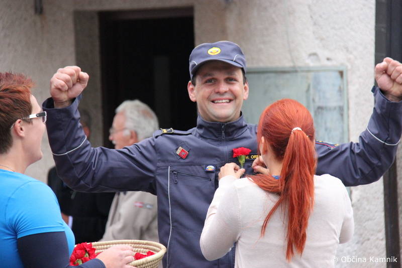 Ob zvokih koračnice Mestne godbe Kamnik je sledila osrednja slovesnost prevzema nove gasilske avtocisterne GVC 16/25. Novo vozilo pa je blagoslovil župnikMiran Klevišar.