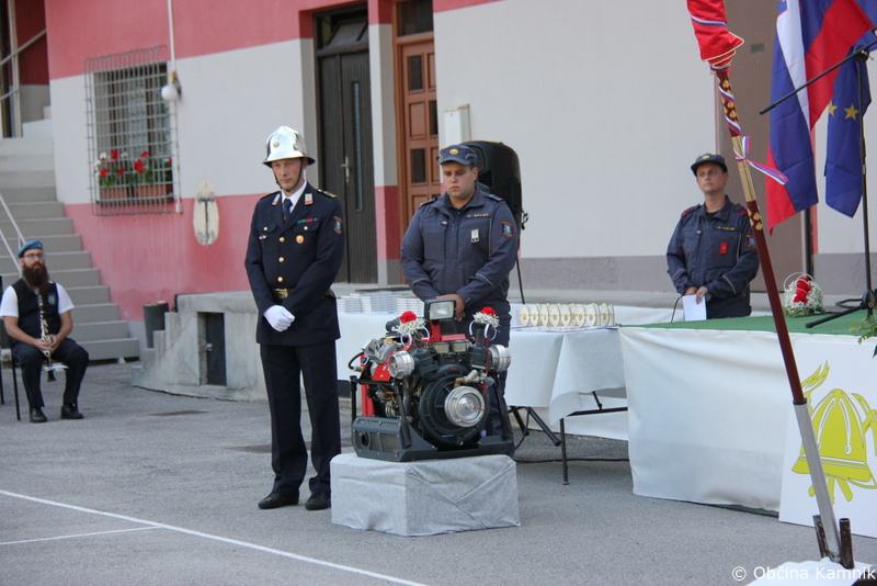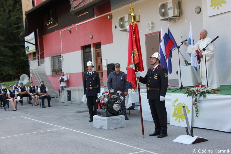 Prireditev se je začela s himno, ki jo je zaigrala Mestna godba Kamnik. Prvotni protokol so morali, zaradi nadaljnjih obveznosti gospoda župnika, v zadnjem trenutku nekoliko spremeniti. Tako so najprej prevzeli novo motorno brizgalno, saj je bila sedanja po več kot 30-tih letih uporabe precej iztrošena. Sledil je prevzem nove motorne brizgalne, in sicer tako, da je predsednik Prostovoljnega gasilskega društva Marko Drolc najprej predal ključe nove motorne brizgalne namestniku poveljnika Robertu Hribarju, le ta pa je predal ključe Andražu Balohu, ki bo skrbnik nove motorne brizgalne. Ta se je zahvalil za zaupanje in obljubil, da bo vestno in skrbno skrbel za novo motorno brizgalno. Upamo, da bo nova pridobitev dobro služila svojemu namenu.