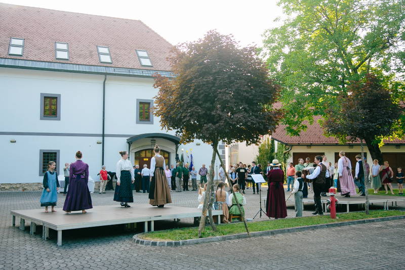 Kako pomembna je slovenska kulturna dediščina, so nam pripovedovali otroci folklorne skupine Šolskega kulturno-umetniškega društva Verine zvezdice Osnovne šole Marije Vere pod vodstvom mentorice Vanje Hočevar, v atriju samostana so prijetno zazveneli zvoki Mestne godbe Kamnik in solista Aleša Sedušaka pod taktirko Martina Dukariča.