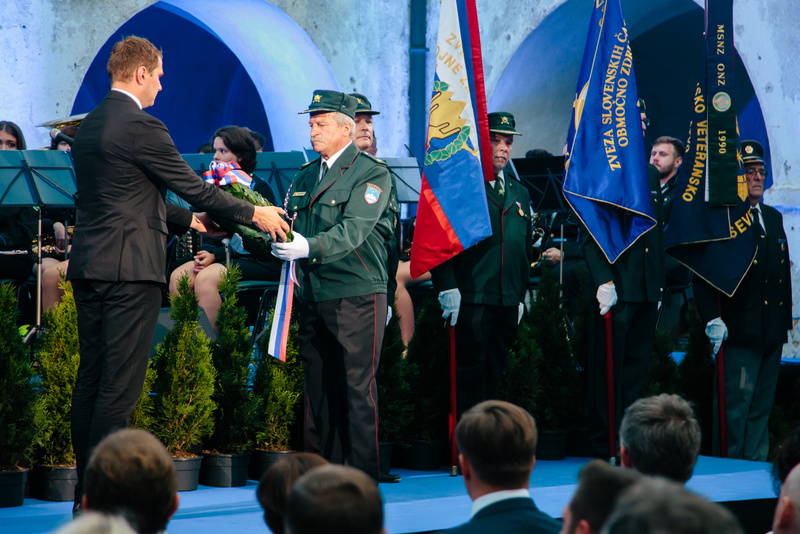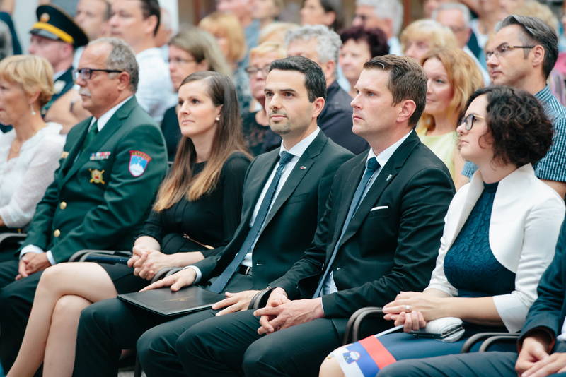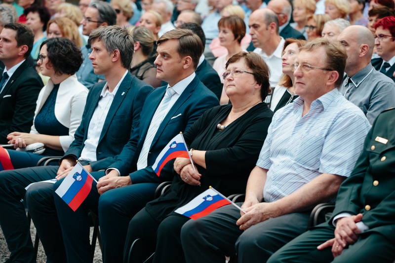 Slavnostni govornik, poslanec Državnega zbora Republike Slovenije mag. Matej Tonin pa je ob današnjem prazniku namenil misli o preteklosti, sedanjosti in prihodnosti vseh nas: »Rojstni dan naše domovine pri vsakem izmed nas prikliče posebne občutke. Vsakdo si je zagotovo za vedno vtisnil v spomin, kje je bil in kaj je počel, ko se je rojevala Republika Slovenija. Vsakdo ima svojo zgodbo. Moja je šolarska. Malo je ljudi, ki bi prvi razred začeli obiskovati v eni državi, končali pa bi ga pa v drugi. Moja generacija je tista srečna, ki je to doživela. Prvi razred smo začeli obiskovati v Jugoslaviji, zaključili pa smo ga v samostojni in neodvisni Sloveniji. Številni tukaj zbrani imate vojaško zgodb. Drugi policijsko, novinarsko, zdravniško ali učiteljsko. Zgodb je toliko, kolikor je državljank in državljanov. Bistveno pa je; vsakdo izmed nas je dodal svoj kamenček v mozaiku samostojne in neodvisne Slovenije. Brez vseh naših zgodb mozaik ne bi bil popoln.«