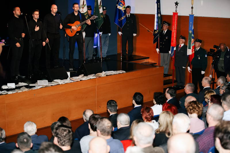 Moč besed vojaka generala Rudolfa Maistra – Vojanova smo nato obujali v polni dvorani kamniškega hrama kulture. Zdravljici v izvedbi Mestne godbe Kamnik in pesmi Slovenec sem v izvedbi skupine Kvatropirci so prisluhnili tudi poslanka Državnega zbora mag. Julijana Bizjak Mlakar, poveljnik 132. gorskega polka Slovenske vojske, polkovnik Robert Klinar, podpredsednika Zveze društev »GENERAL MAISTER« Jožef Tišler in Vitko Roš, poveljnik Enote za protokol Slovenske vojske podpolkovnik Marko Hlastec, polkovni podčastnik 132. gorskega polka Iztok Racman, predsednik Zveze policijskih veteranskih društev Sever dr. Tomaž Čas,župani sosednjih občin, podžupana Občine Kamnik Igor Žavbi in Matej Slapar, občinske svetnice in svetnike, predsednik Društva general Maister Kamnik Ivan Miroslav Sekavčnik, predsedniki, člani in praporščaki domoljubnih in veteranskih organizacij Občine Kamnik, častna občana Občine Kamnik Jože Berlec in dr. Aleksandar Doplihar ter današnji dobitniki priznanj.