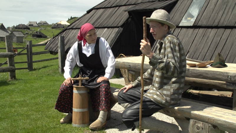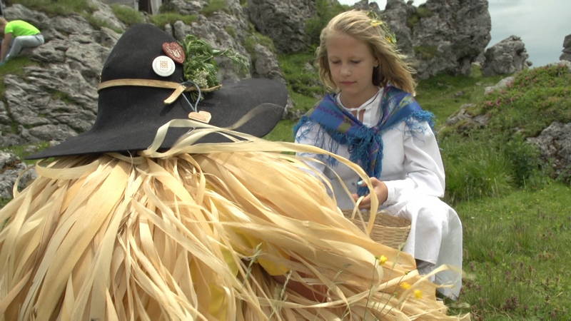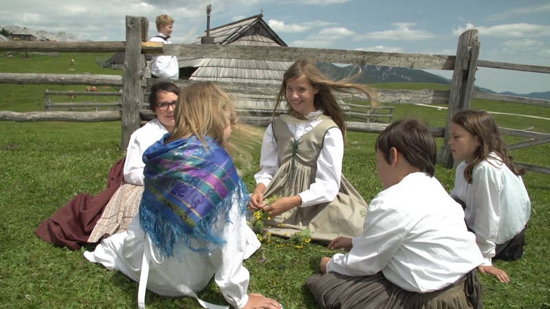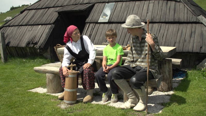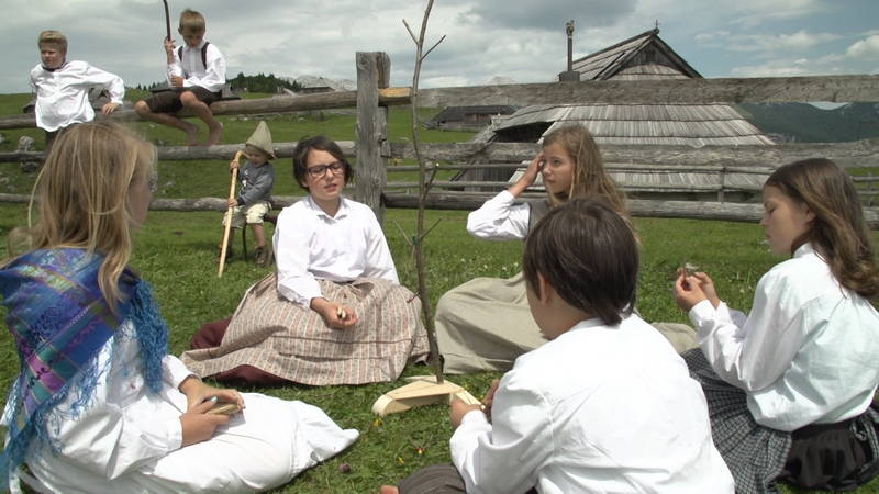 Velika planina nas je pričakala v vsej svoji idiličnosti in prvinskosti. Sončen dan med planinskimi stanovi, kravami in telički. S snemanjem prizorov je pastirska bajta Erjavškovega Petra oživela, z dramatizacijami smo se preselili v preteklost: pred njo so pastiričke pletle venčke, se igrale igrico nebeškanje in pele ljudske pesmi. Navihani pastirčki so jim nagajali, jih cukali za kite in dvigovali krila.