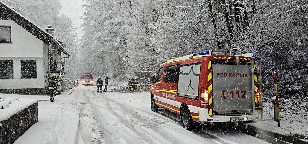 Nekaj dela je sneženje povzročilo tudi gasilcem, ki so bili malo pred deseto uro obveščeni, da se je pri Košišah na cesti Kamnik – Tunjice, na cesto podrlo drevo.