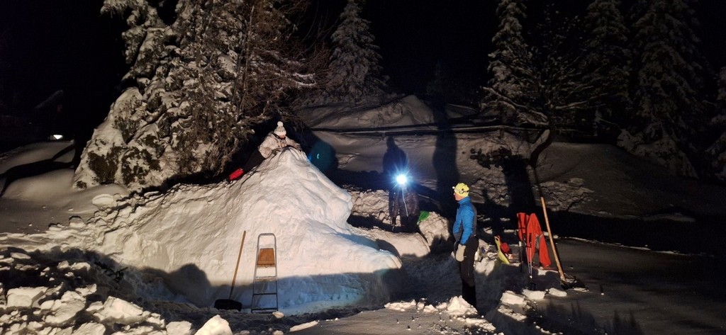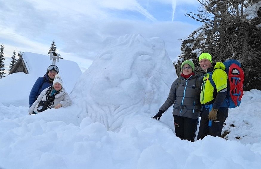 Izkazalo se je, da nas štiri odrasle navdušence čaka kar precejšen izziv, saj je bil sneg zelo sipek in se ni sprijemal v kepo. Pomagali smo si tako, da smo sneg polivali z vodo in ga postopoma utrjevali. Lev je nastajal dobre štiri ure, a vztrajnost je obrodila sadove.