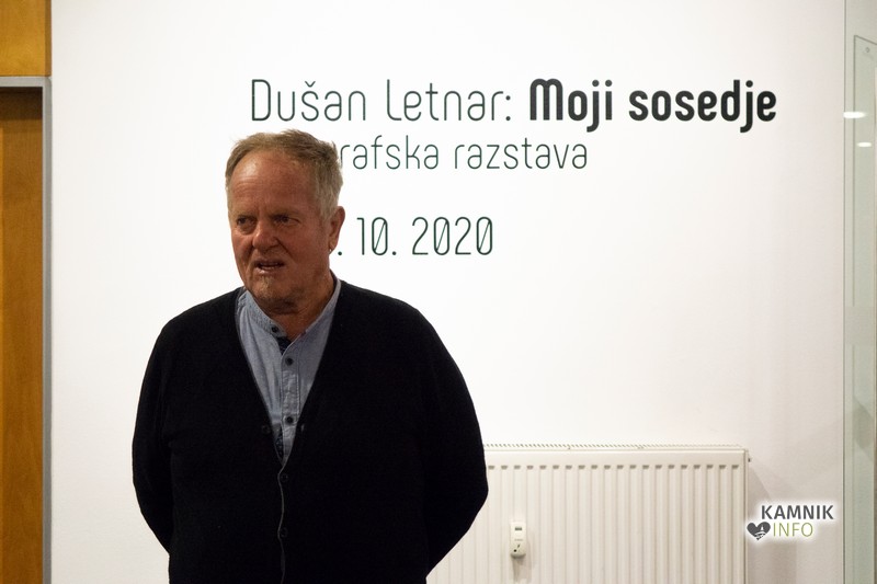 Dušan Letnar, fotograf, ustvarjalec in kronist naselja Jeranovo iz Kamnika je včeraj v galeriji Doma kulture postregel z novo, svežo in zanimivo fotografsko razstavo z naslovom Moji sosedje.
