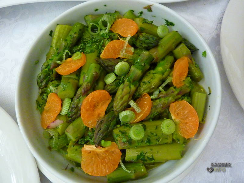 Na čarobni mizici rubrike »njami-njami« so se tako znašli tlačenka, gratinirani šparglji, pečen kozliček, nadevani paradižniki, orada, svinjska ribica, pljučni file v omaki iz špargljev, kot že rečeno, pa so vse skupaj, vsako jed po svoje, povezovali šparglji, ki so bili na različne načine dodani jedem. No, edino v zavitku jih ni bilo, ampak Janez bi zagotovo znal narediti tudi špargljev zavitek. Prav zares, njami-njami.