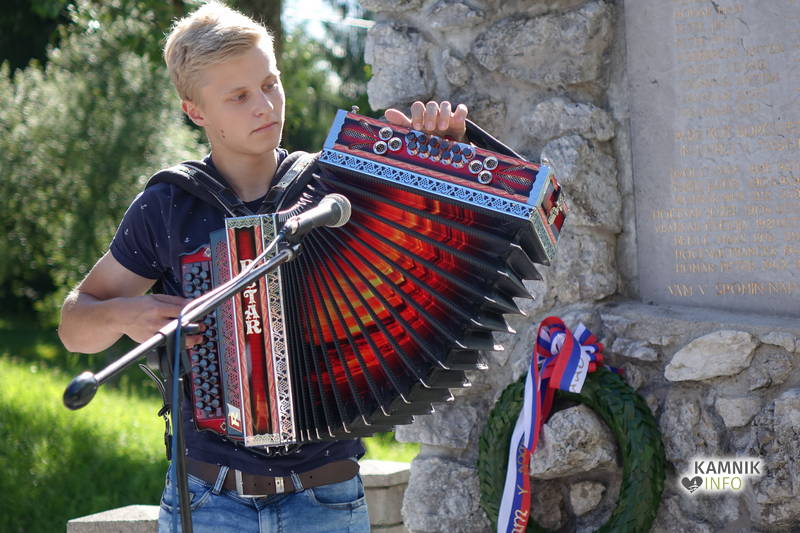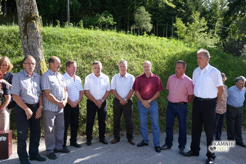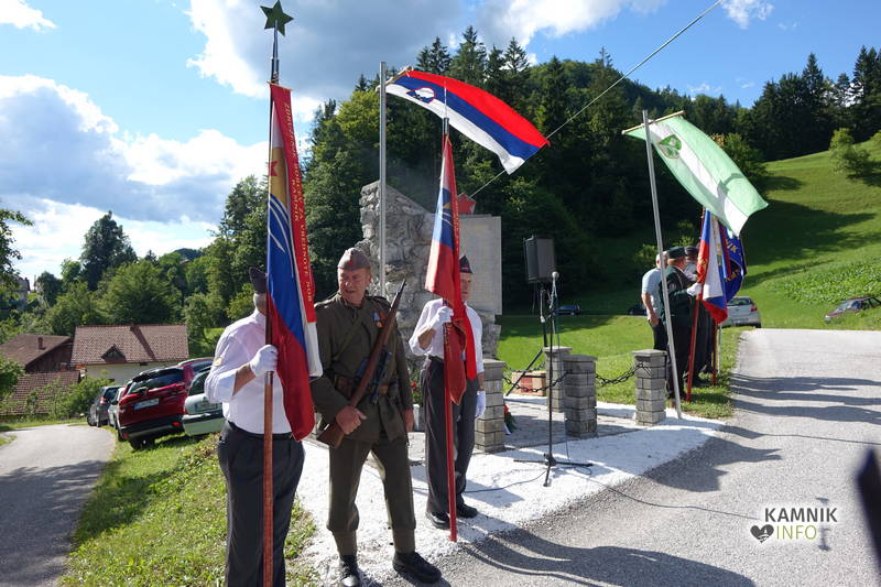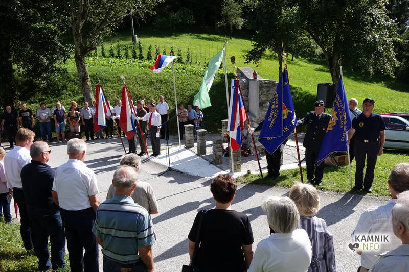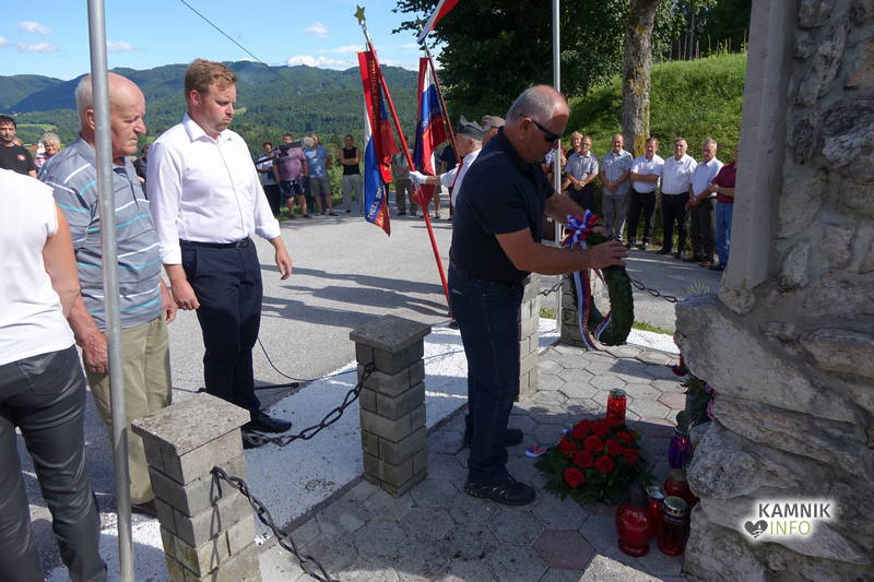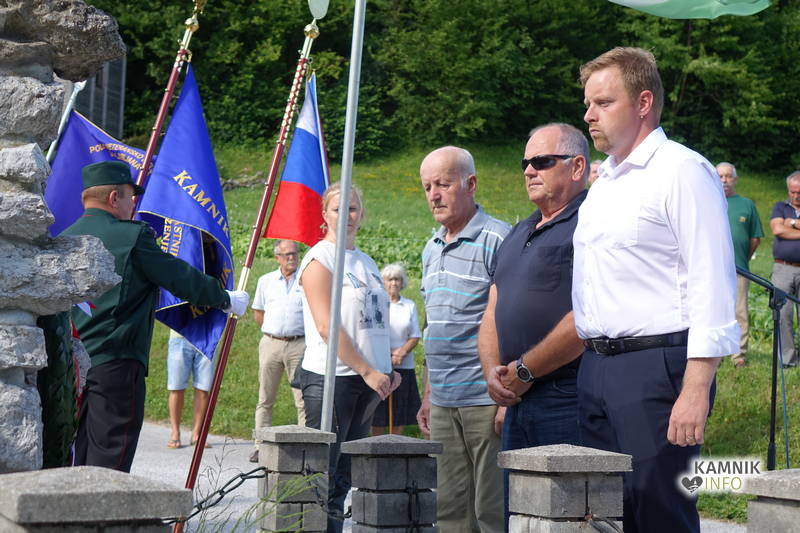 Po uvodnem nagovoru in pozdravu Nine Modrijan, podpredsednice KS Šmartno, ki 8. julij obeležuje kot krajevni praznik, so podžupan občine Kamnik Igor Žavbi ter predstavnika Združenja borcev za vrednote NOB občine Kamnik in Tuhinj Dušan Božičnik ter Jože Hribar k spominskemu obeležju položili venec.