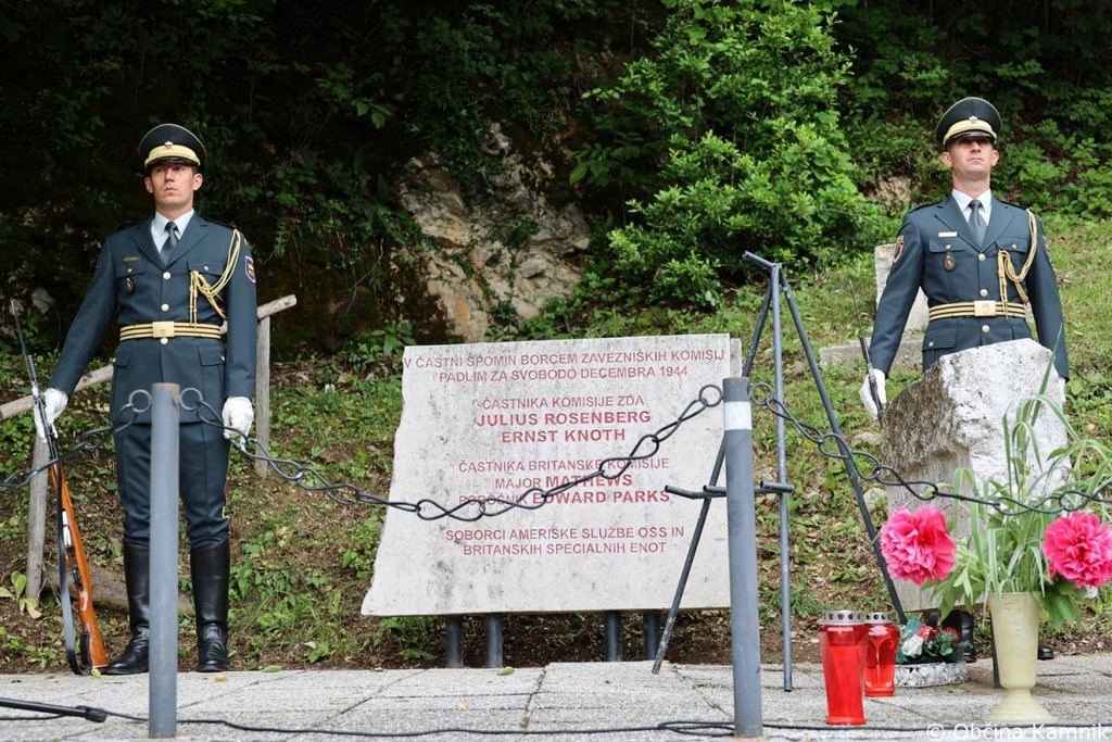 Na mestu spomina in opomina se je delegacija, ob prisotnosti Častne enote in kvinteta Slovenske vojske ter zastavonoš, s položitvijo venca poklonila dr. Petru Držaju, vodji ameriške vojne misije, kapetanu Charlesu Fisherju, dvema ameriškima oficirjema Juliusu Rosenbergu in Ernstu Knothu, ter dvema britanskima oficirjema, majorju Mathewsu in poročniku Edwardu Parksu, ki so v letih 1944 in 1945 padli za svobodo v teh krajih.