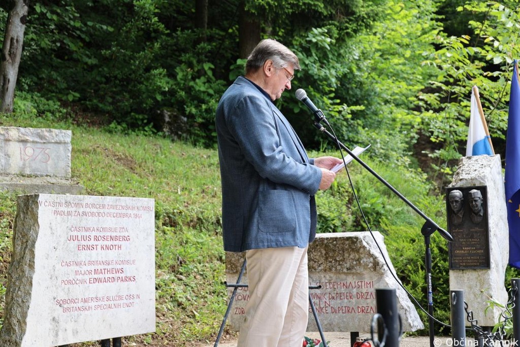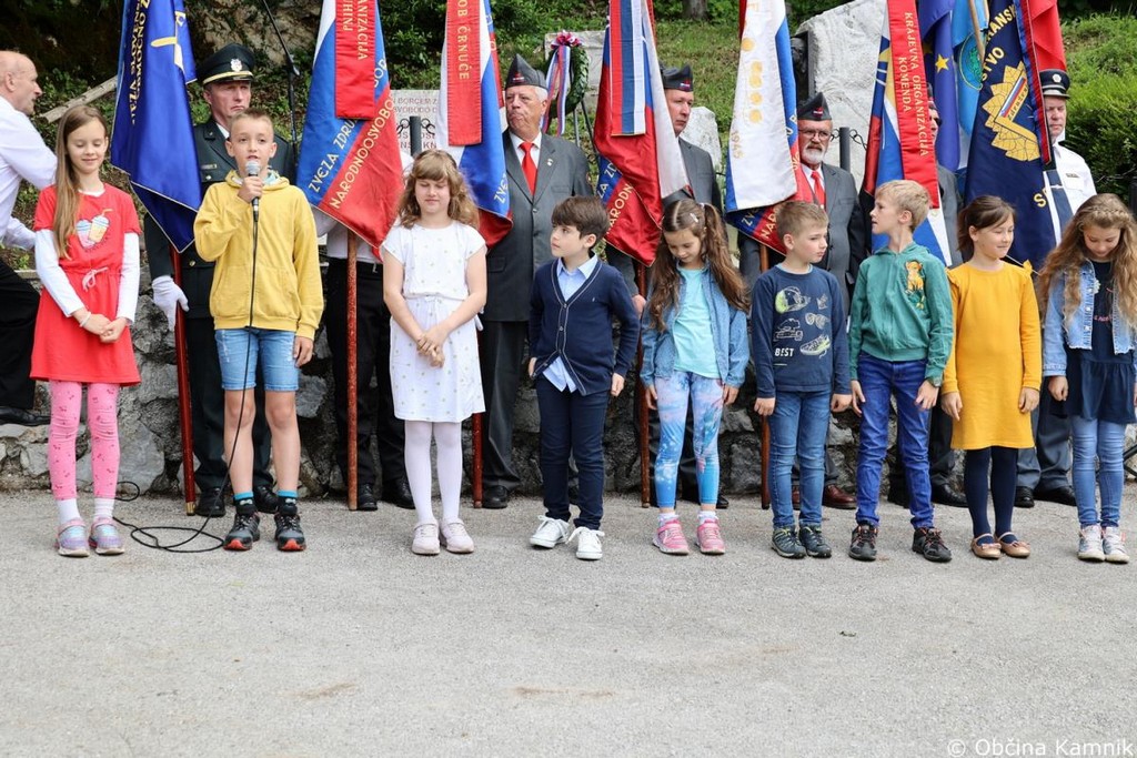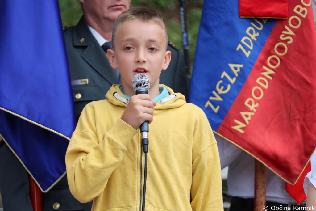 Za to se vam v imenu Občine Kamnik iskreno zahvaljujem. Zahvaljujem pa se tudi vsem vam, spoštovane obiskovalke in obiskovalce, saj se vsako leto v velikem številu zberete pred spomenikom in tako tudi z vašo pristnostjo ohranjate spomin na žrtve narodnoosvobodilnega boja ter izražate spoštovanje partizanskemu gibanju. Danes se spominjamo pogumnih dejanj posameznikov in združenj, ki so se borili proti zatiranju in se borili predvsem za naše vrednote in našo, slovensko svobodo. Predanost in vizija, da zagotovijo lepo prihodnost za slovenski narod, sta ustvarili temelje za mir, svobodo in spoštovanje človekovih pravic, ki jih imamo danes. Naj bo ta slovesnost in spomin na žrtve druge svetovne vojne priložnost za to, da se še bolj zavemo pomena miru, ki ga danes uživamo. Mir je dragoceno darilo vseh mož in žena, ki so se borili v vseh vojnah za Slovenijo. Številni so se borili za svobodo, neodvisnost in dostojanstvo, za solidarnost, enakost, pravičnost in človekove pravice. Vse to imamo. Ne zapravimo jih, cenimo jih in varujmo, predvsem pa bodimo ponosni na zgodovino slovenskega naroda in o njej na glas govorimo na vsakem koraku. Srečno Slovenija in slava vsem žrtvam, ki so se borili za svobodo slovenskega naroda.«