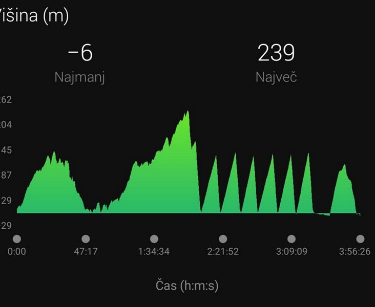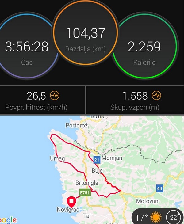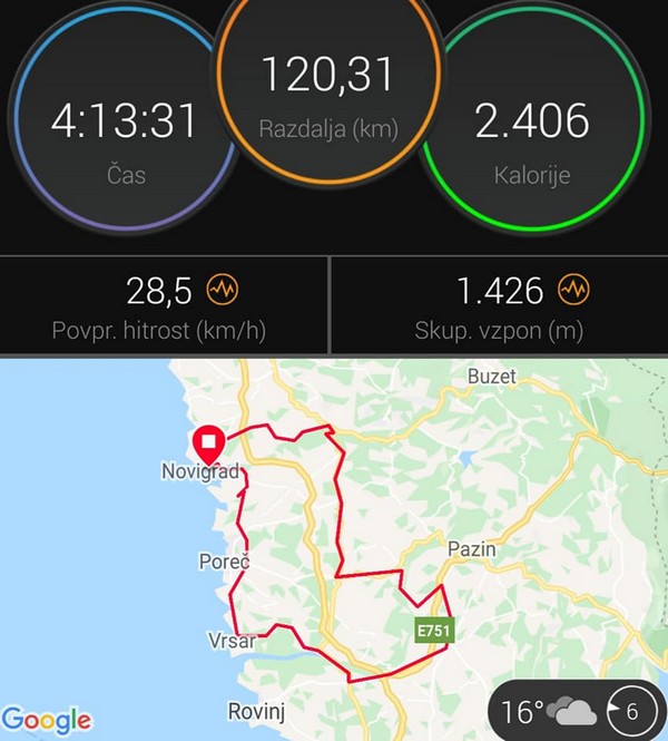 Jutranjem plavanju v hotelskem bazenu je po zajtrku sledil dopoldanski tek na obali morja, oboje je trajalo po dobro uro in po kosilu kaj kmalu tudi popoldansko kolo. Le to pa je bilo iz dneva v dan različno, kajti Novigrad z okolico ponuja res pester izbor ali ravninskega ali ”planinskega” kolesarjenja. In glede na to, da so v Istri odprte terase, je bil ponavadi kak gorski cilj posvečen obisku terase na obzidju starodavnih mest in pavze na njej ter, seveda, kava na Grožnjanu, pivo na Motovunu ali ocvrte miške na Oprtalju, da Vrsarja, Vižinade, Buzeta ali Kanfanarja ne omenjamo. Od 70 do 120 km se je nabralo vsak dan in tistim, ki so bili na pripravah 9 dni, se je seštevek kilometrov približal 1000, premagani višinski metri pa 10.000.