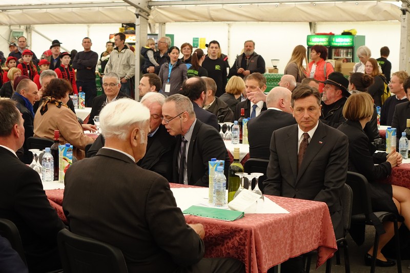 Predsedniku Pahorju je Alojz Lah v imenu organizatorjev v spomin poklonil sliko konjenikov, s skupnim stiskom rok vseh treh govornikov, pa je bil sejem tudi uradno odprt.