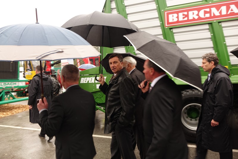 Predsednik in visoki gostje so si pod dežniki ogledali sejemsko ponudbo, predsednik Pahor pa se je, tako kot dobršen del obiskovalcev, ki niso strokovnjaki s področja kmetijske mehanizacije, spraševal o namenu posameznih razstavljenih strojev, ki včasih spominjajo tudi na kako vesoljsko plovilo
