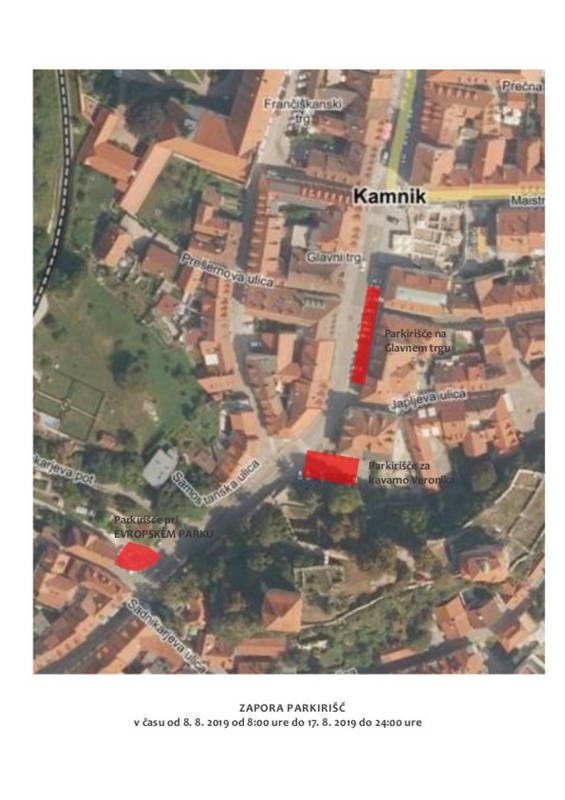 Obveščamo vas, da bo zaradi prireditve KAMFEST 2019 v času od 9. 8. 2019 do 17. 8. 2019 med 17.00 in 24:00 sprememba prometnega režima v centru Kamnika.