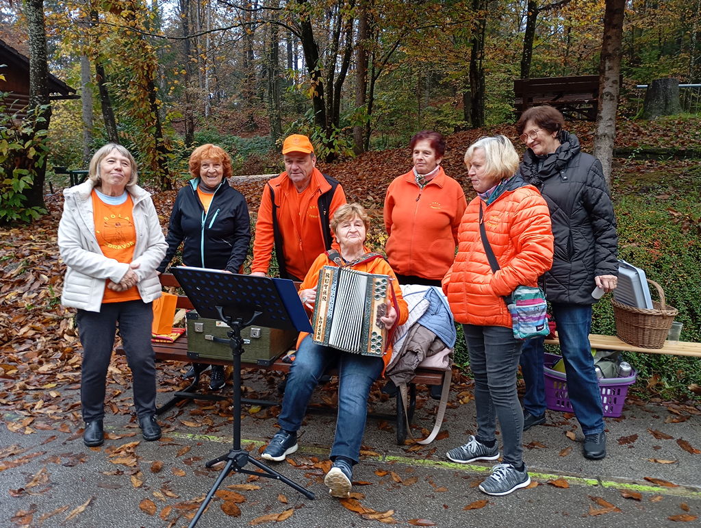 Prijetno druženje se je nadaljevalo ob domačem čaju, kavi, prigrizkih in sladkih pregrehah. Za še boljše vzdušje je poskrbela ga. Lojzka s svojo harmoniko. Kar hitro so se ji pridružili pevci in pevke in okolico je napolnilo ubrano petje.