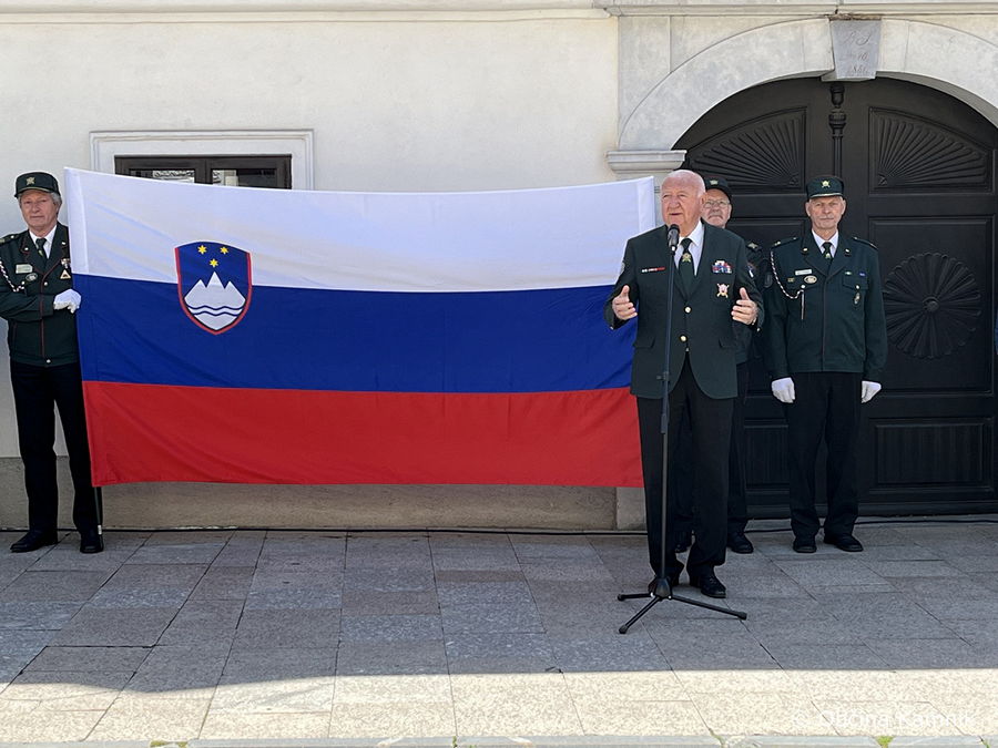 Za prapori pokrajin sta sledila prapor Zveze veteranov vojne za Slovenijo, ki ga je nosil praporščak OZVVS Domžale Marjan Kveder, in prapor Manevrske skupine Narodne zaščite RS v rokah praporščaka OZVVS Kamnik-Komenda Franca Uršiča. »Nositi prapor je čast, je dostojanstvo, je ponos! Vsem praporščakom je v veliko čast, da se tokrat lahko postrojijo pred rojstno hišo velikega vzornika, generala in humanista Rudolfa Maistra,« je vlogo praporjev povzel povezovalec prireditve Tone Ftičar.