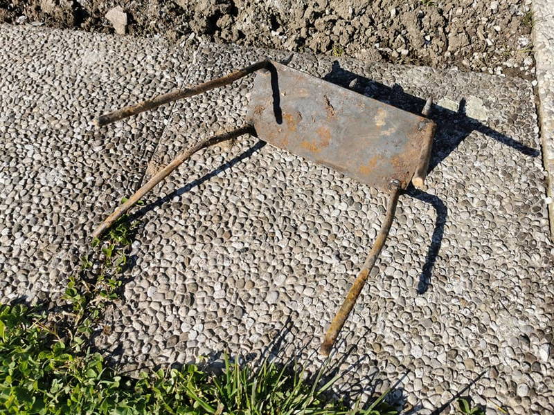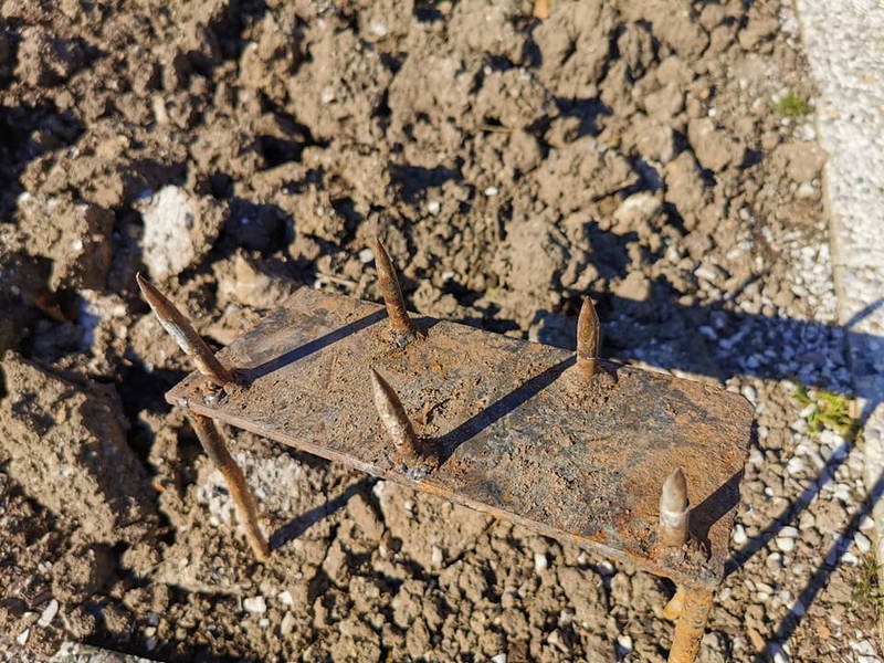 S fotografij je moč razbrati, da se nevarna naprava oz. past, že katere izdelava je od njenega zlobnega kreatorja zahtevala kar nekaj časa, nameščena oz. zabodena v gozdno stezo pa se tamkaj najbrž ni nahajala prav dolgo, saj je rja še ni pretirano načela, vari pa so videti še precej sveži.
