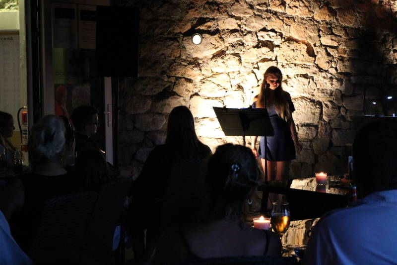 Večer, ki sta ga Nastja in Teja nežno obarvali s prelepo glasbo največjih mojstrov te umetnosti, izvedeno v idiličnem ambientu terase z razgledom do roba obzorja (in preko), ko se večer preveša v noč in v družbi s prijatelji, je bil več kot le prijeten. Zagotovo romantičen in nostalgičen in skorajda intimen.