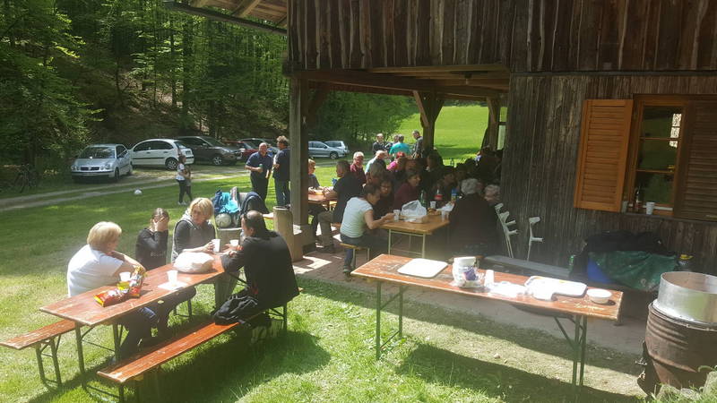 Glavne zasluge za to, da smo se spet zbrali skupaj imajo ponovno Sandra, Damjan in Dejan s svojimi pomočniki ter Koltetovi, ki so ponovno odstopili prostor za naše druženje. Dejan je že prejšnji večer poskrbel za to, da nam ni bilo potrebno predolgo čakati na slasten golaž. Vonj se je iz kotla kmalu razlezel po dolini in kar sam vabil, da ga poizkusimo in se okrepimo po noči, ki je bila zaradi kresovanj za marsikoga naporna.