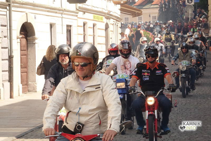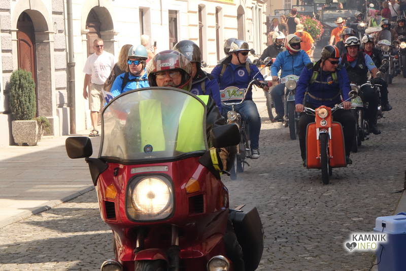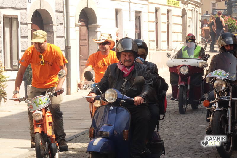 Prek 200 udeležencev, letošnja udeležba naj bi bila rekordna, ki so se srečanja udeležili z najrazličnejšimi mopedi, motorji, avtomobili, tovornjaki in celo starimi traktorji, vojaškimi in gasilskimi vozili, so na Glavnem trgu, razen županov občin Kamnik in Vodice, pozdravili tudi člani Folklorne skupine Kamnik, vesela druščina voznikov in njihovi sopotnikov, pa se je po kratkem postanku in osvežilu v Kamniku, odpravila naprej na svojo 73-kilometrov dolgo pot.