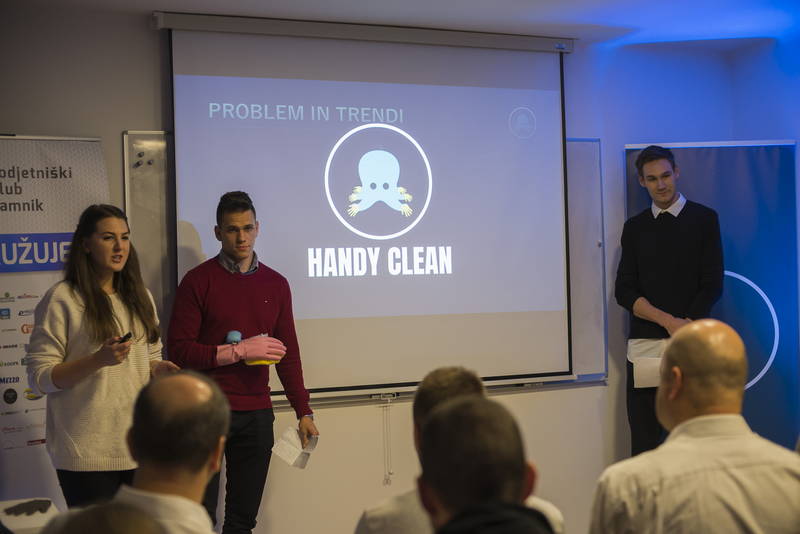 Naslednji izdelek je bil izum treh mladih študentov ekonomije, in sicer Ane Šali, Tilna Skoka in Elvisa Rusjana – ekipa Handy Clean. Izumili so mnogo funkcijsko rokavice za čiščenje posode. Rokavica ima že vgrajen dozirnik detergenta, gobico na dlani in še več.