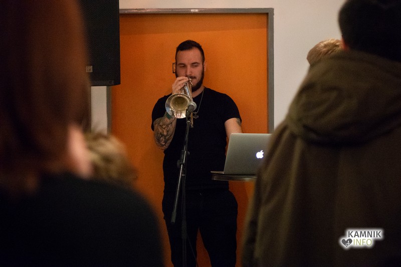 Razstavo sta zaokrožila Gašper Selko na trobenti in Anže Slana z recenzijo, zbrani pa so bili povabljeni na pogostitev in pogovor z avtorjem razstave.