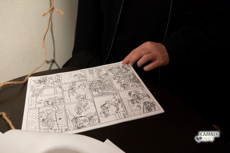Endi, avtor in umetnik stripov in ilustracij, s svojimi deli prikaže njegov vsakdan. Med deli je mogoče opaziti veliko portretov, ki prikazujejo njegove prijatelje, na drugih risbah pa z izjemnimi detajli prikaže svoje dni v Kamniku: na Starem gradu, v vagonu vlaka, v Ciriusu.