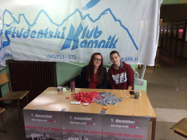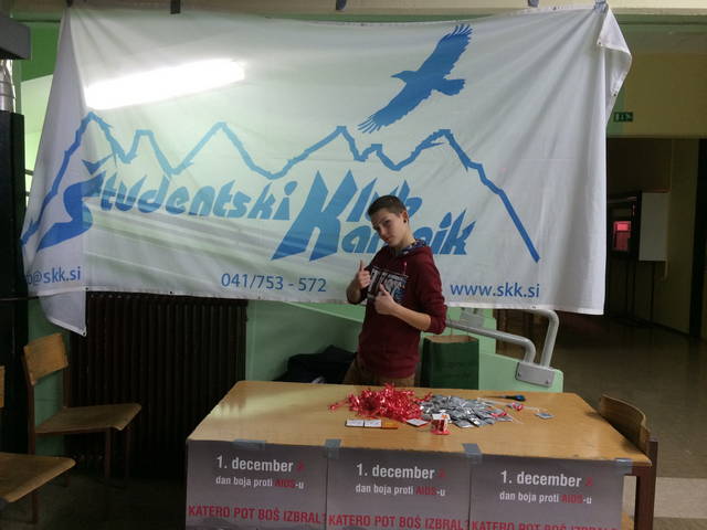 1. december je dan, ko zavladajo rdeče pentlje, ki nas opominjajo na svetovni dan boja proti aidsu. V sodelovanju z Zvezo študentskih klubov Slovenije, se je projektu letos pridružilo rekordno število klubov (37), med njimi je že tradicionalno tudi Študentski klub Kamnik. Danes smo delil brošure, pentlje in kondome na Gimnaziji in srednji šoli Rudolfa Maistra in se na ta način pridružili ozaveščanju o bolezni, ki je prisotna v naši družbi in o kateri je potrebno govorit na glas.