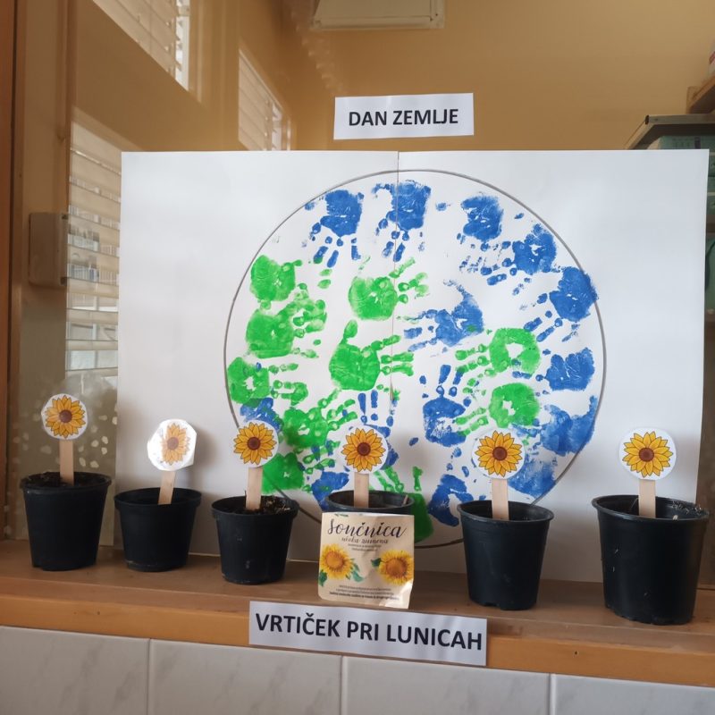 Tudi v skupini Lunice v vrtcu Antona Medveda v Kamniku smo se odzvali pobudi in obeležili Svetovni dan Zemlje z ogledom vrtčevskega vrtička, v lončke smo posadili semena sončnice, s prstnimi barvami izdelali plakat Zemlje in povabili otroke ter vzgojiteljice iz ostalih skupin, da so si ogledali predstavo »Zelo lačna gosenica«, ki smo jo pripravile in izvedle strokovne delavke skupine Lunic, za starše pa je bila na nivoju enote organizirana štafeta semen.